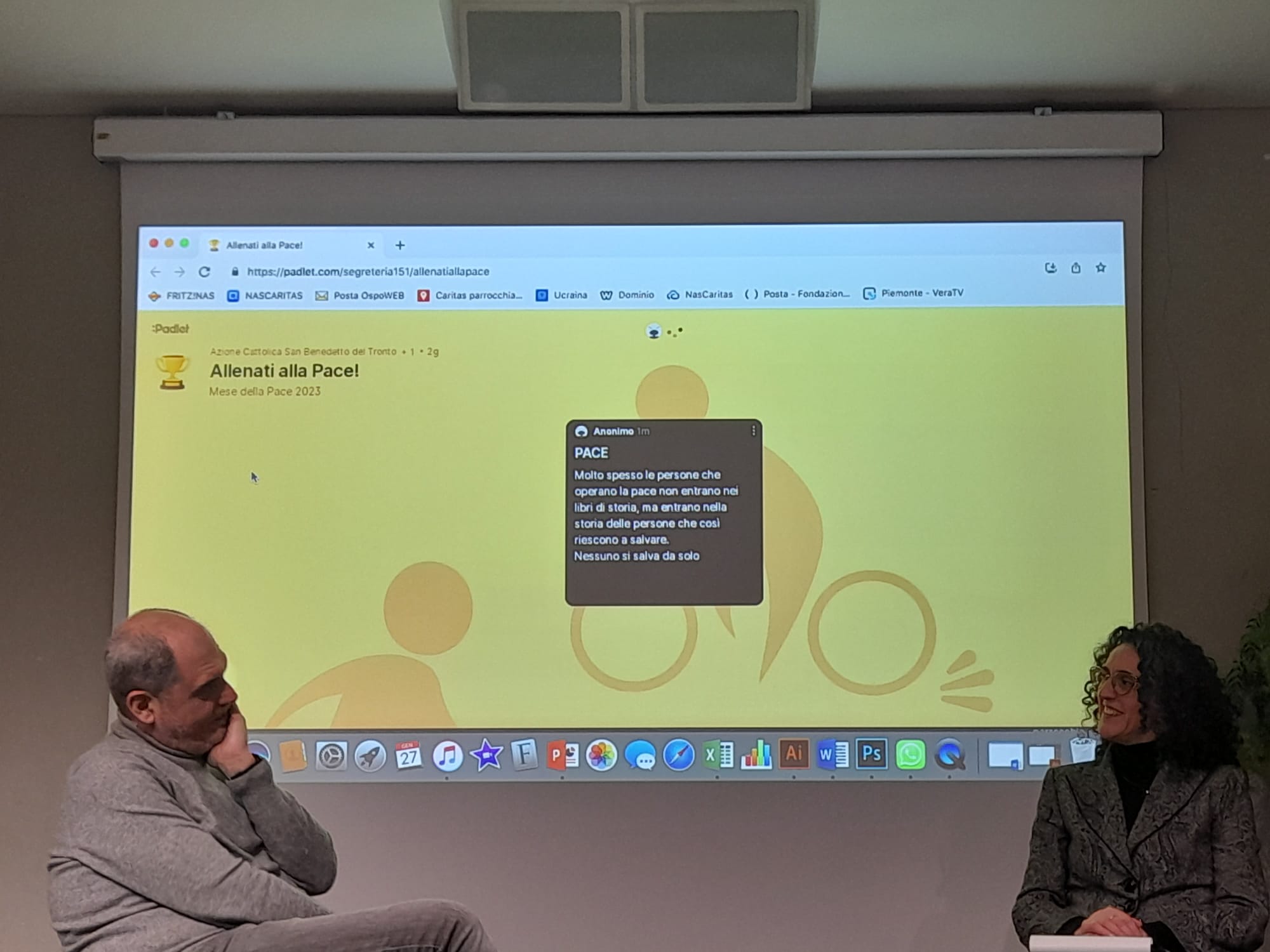 Alessia e Manuel hanno poi chiamato sul palco Monica Vallorani, incaricata regionale MLAC, che ha contribuito a dialogare con il presidente nazionale AC Giuseppe Notarstefano sul tema della serata. Queste le parole di Notarstefano: “La data scelta per questo incontro non credo sia casuale: la Giornata della Memoria, che cade proprio oggi, infatti, rappresenta una data importante per parlare di pace. Proprio in questi giorni mi è capitato di ricordare alcuni eroi dell’Azione Cattolica che hanno operato per la pace, rischiando la vita, per salvare alcuni Ebrei dalla deportazione. Molti di loro lo hanno fatto non perché si sentissero degli eroi, ma semplicemente perché si sentivano di dover mettere in pratica i principi in cui credevano“. Commentando poi il messaggio di papa Francesco per la Giornata Mondiale della Pace, Notarstefano ha detto: “Nel suo messaggio il pontefice si chiede se questo tempo che abbiamo vissuto durante la pandemia ci abbia reso migliori e, dopo varie rilfessioni, conclude che la pace non è qualcosa di astratto, bensì una conversione personale e comunitaria. Questo significa che dobbiamo ricostruire la comunità dentro di noi, coltivare interiormente il senso di comunità.