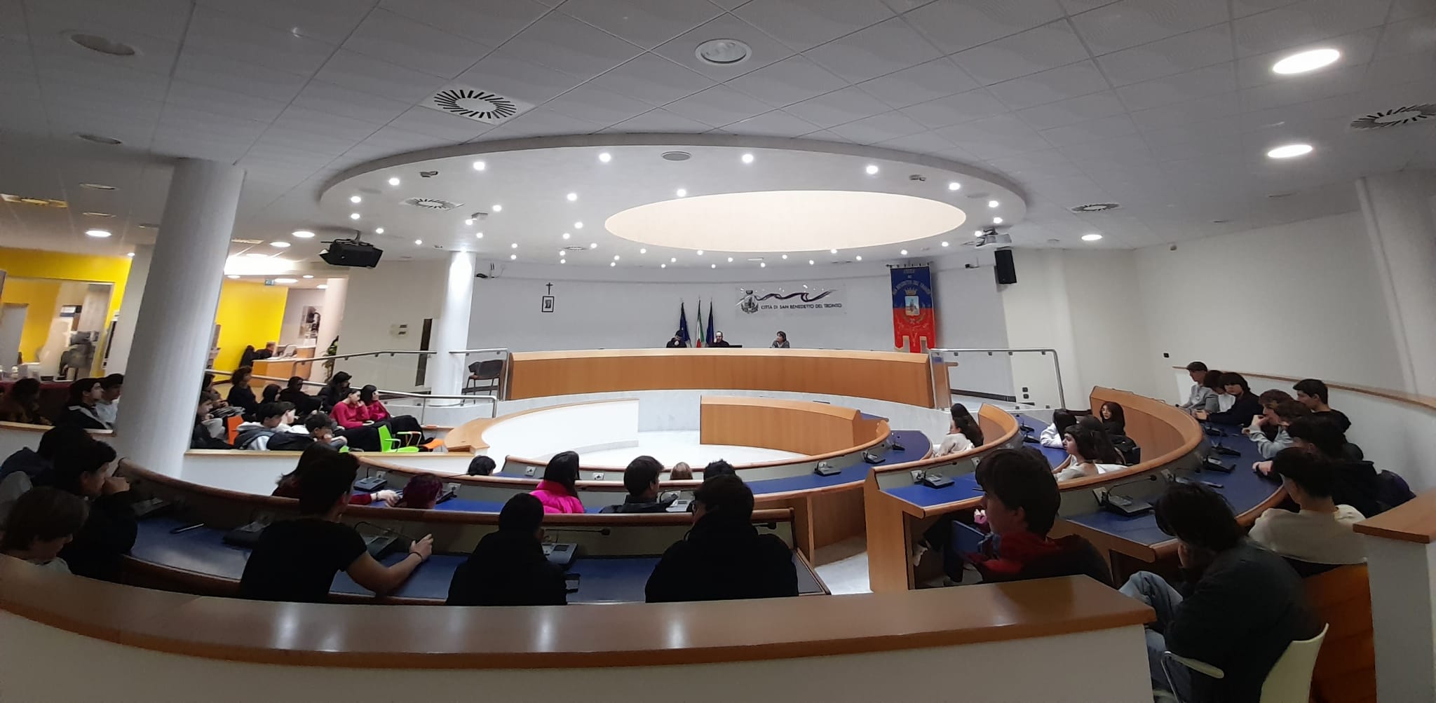 SAN BENEDETTO DEL TRONTO – Numerose sono state le iniziative negli Istituti di Scuola Secondaria di Secondo Grado di San Benedetto del Tronto e Grottammare in occasione della Giornata della Memoria che si è celebrata lo scorso venerdì 27 gennaio. In particolare il Liceo Scientifico “Benedetto Rosetti” ha organizzato per gli studenti delle classi IV A, IV B e IV , una visita alla mostra dal titolo “Gli amici della Rosa Bianca – La loro vita risuona come il canto di un’umanità nobile”, curata dall’Associazione Fides Vita ed esposta nella Sala Consiliare del Comune di San Benedetto del Tronto. Presenti all’incontro la dirigente del Liceo Rosetti Stefania Marini e due dei curatori della mostra, don Armando Moriconi e Lorenzo Maurizi.