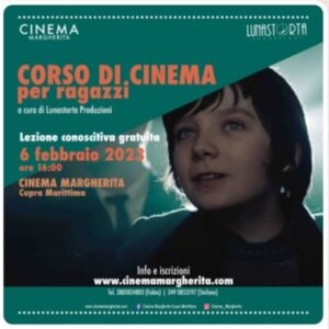 CUPRA MARITTIMA – Si terrà lunedì 6 febbraio, alle ore 16:00, presso il Cinema Margherita di Cupra Marittima, il primo appuntamento del Corso di Cinema organizzato dalla società “Lunastorta Produzioni” e rivolto ai giovani dai 15 ai 20 anni che si avvicinano al mondo del cinema per la prima volta. L’incontro conoscitivo, dove verranno spiegate a tutti i partecipanti le metodologie utilizzate durante il corso, è gratuito ed aperto a tutti.