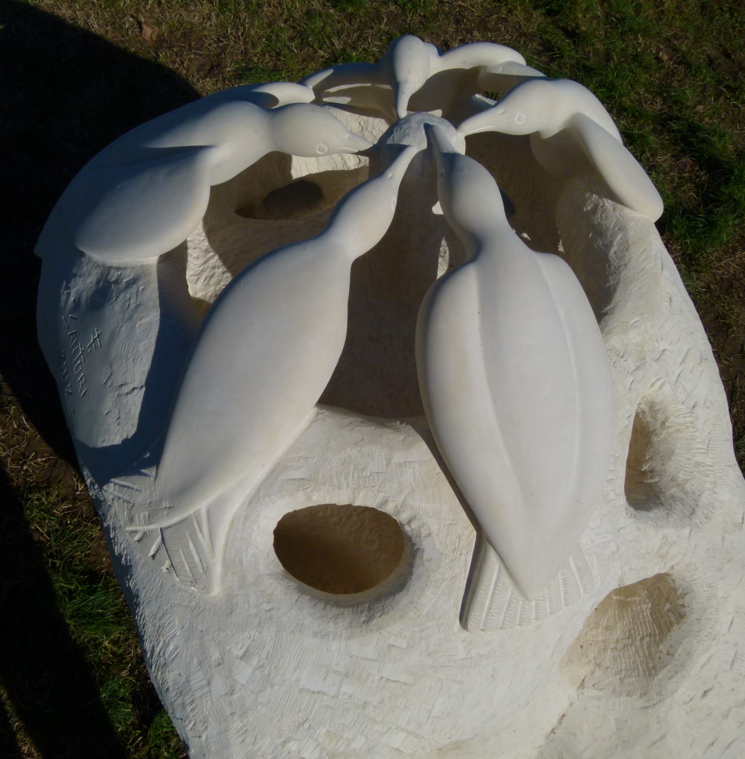 Scolpita su pietra della Majella, l’opera rappresenta i cinque continenti raffigurati da colombe che si incontrano nel dialogo. La scultura fu realizzata su input della Consulta per la fratellanza tra i popoli del comune di Grottammare ed era stata collocata ai piedi di un alberello di ulivo simbolico (pure martoriato dai vandali), il 10 dicembre 2012, nel giorno della ricorrenza della Dichiarazione universale dei diritti umani.