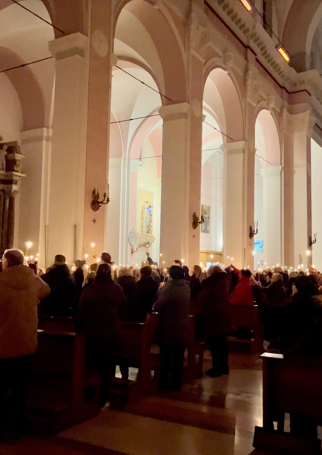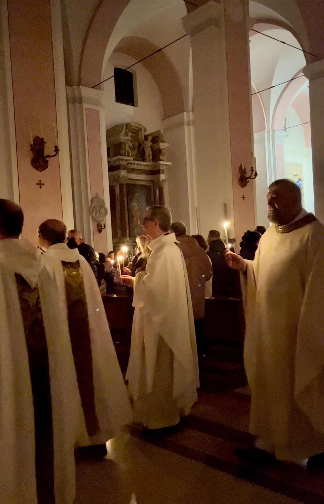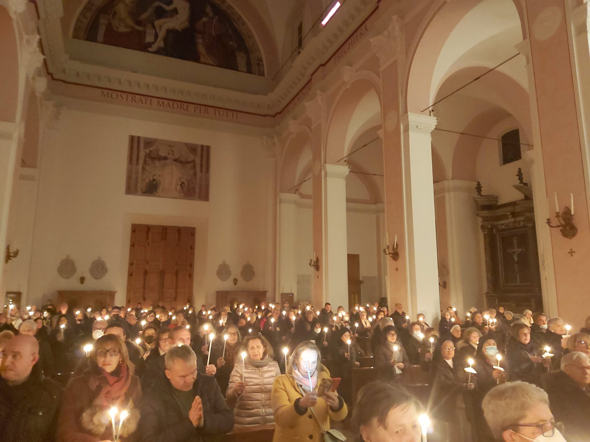 Queste le parole di don Patrizio durante l’omelia: “Carissimi fratelli e sorelle, che bello essere qui questa sera tutti insieme! Prima che iniziasse la celebrazione, ho mandato una foto del nostro radunarci qui in Cattedrale al nostro caro vescovo Carlo, che in questi giorni vive la Visita Pastorale alle Suore Teresiane che sono nelle Filippine, e naturalmente lo teniamo presente nella nostra preghiera.