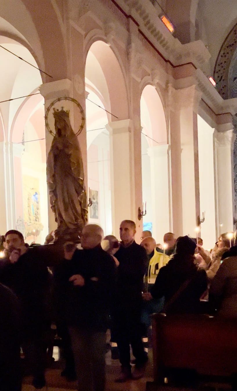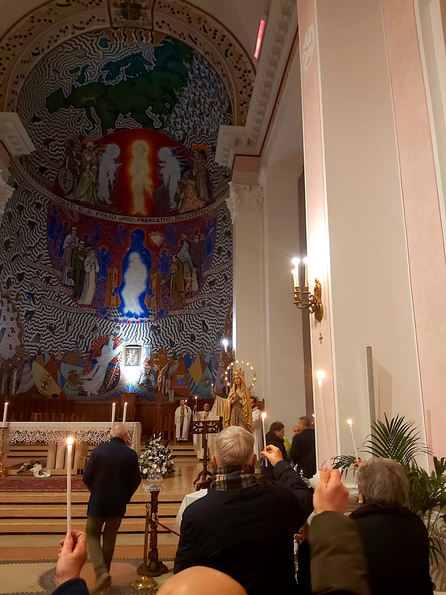 Al termine della celebrazione si è tenuta la tradizionale processione aux flambeaux lungo le navate della Cattedrale: come da consuetudine, è stata portata in processione la statua della Madonna di Lourdes che generalmente è ubicata presso la sede del Biancazzurro a Porto d’Ascoli.