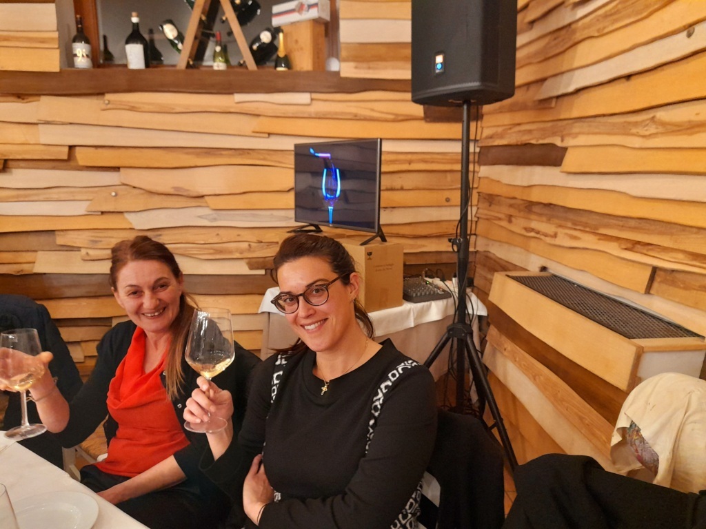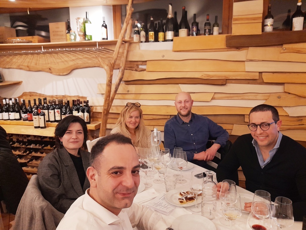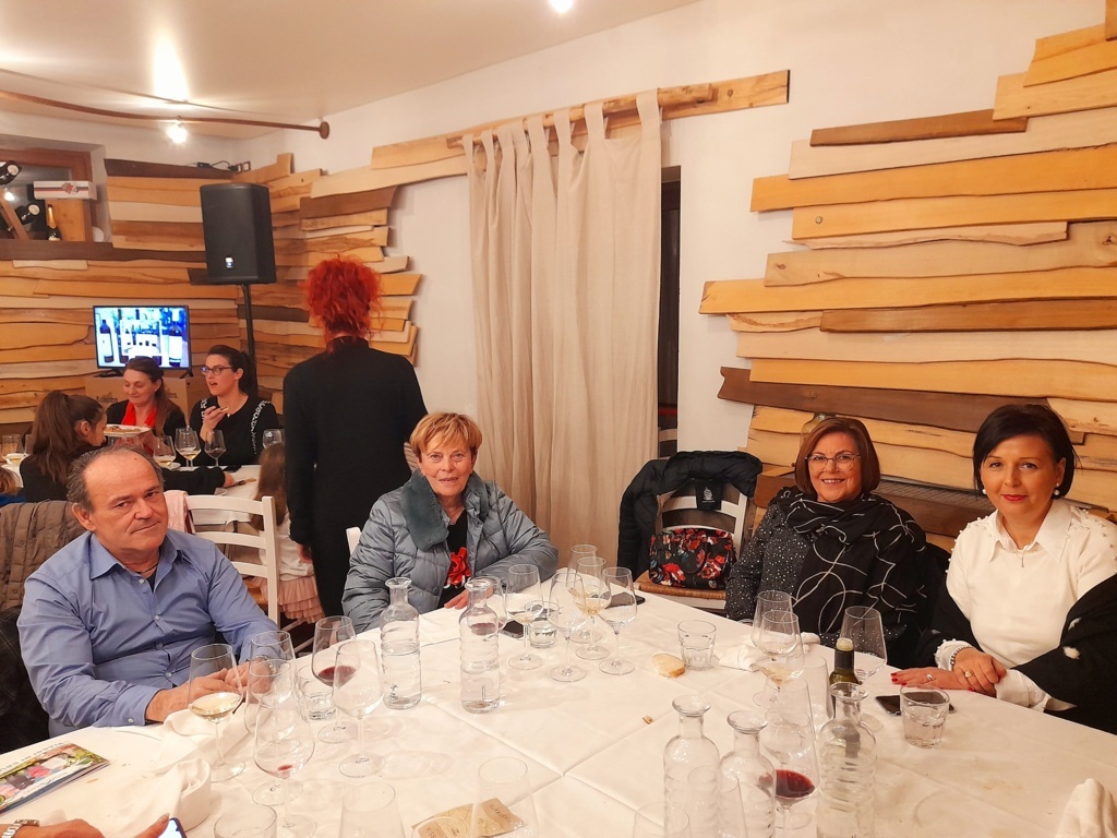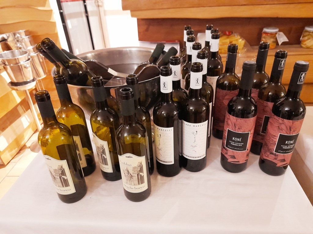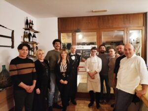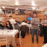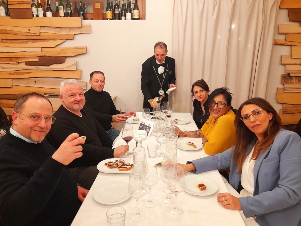 Quattro, invece, sono state le cantine promosse durante la cena dal Sommelier Ivan Millanaccio, appartenente all’AIS Marche (Associazione Italiana Sommelier della nostra regione) – delegazione di Ascoli Piceno: “Ad ogni piatto abbiamo abbinato un vino del nostro territorio. Per gli antipasti, che sono stati molto variegati, ho scelto una passerina abbastanza strutturata, la Raffa 2021 dell’Azienda Agricola Biologica Clara Marcelli di Castorano, che si è ben sposata con il loro gusto deciso. Con gli gnocchi ho proposto un pecorino, il Fiobbo 2020 dell’Azienda Agrobiologica Aurora di Offida che ha ben accompagnato il gusto intenso del sugo al cinghiale. Al secondo, invece, carne marchigiana cotta in padella ed accompagnata dalla polenta, ho abbinato il Koné, un Rosso Piceno Superiore 2019 dei Vigneti Vallorani di Colli del Tronto e Castorano, che vanta 18 mesi di affinamento in barrique ed un ulteriore periodo di maturazione di 12 mesi in bottiglia. Gli ospiti hanno molto apprezzato l’equilibrio sia del vino sia dell’abbinamento proposto. Oltre alle eccellenze delle cantine che abbiamo ospitato stasera, ho utilizzato anche altre bevande locali: infatti, al dolce ho abbinato, oltre al vino cotto dell’Azienda Mestichì, anche un assaggio di Anice Verde di Castignano dell’Azienda Terre dei Calanchi Piceni, un presidio Slow Food del nostro territorio”.