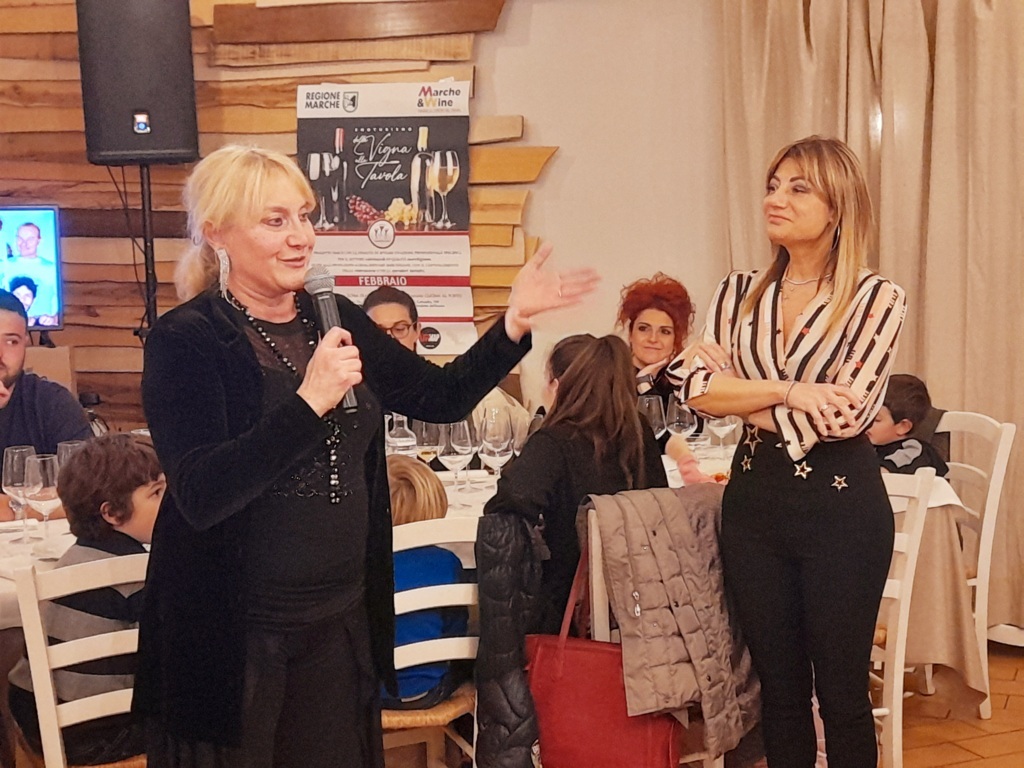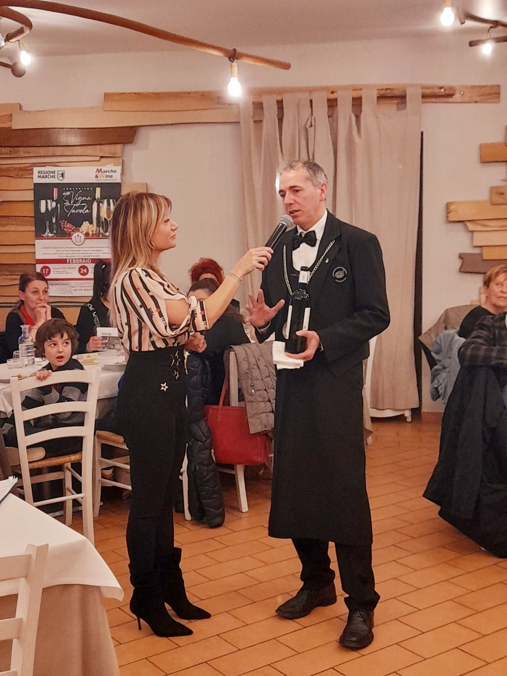 La cena è stata impreziosita dalla grande professionalità della presentatrice Antonella Ciocca, la quale, attraverso le sue parole, ha condotto i presenti in un viaggio virtuale alla scoperta dei tesori enogastronomici del Piceno.