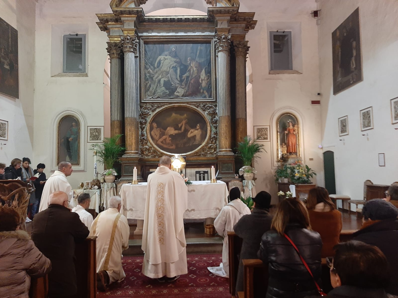 GROTTAMMARE – Si è svolta giovedì 16 febbraio alle ore 21:00, presso la Chiesa di Sant’Agostino a Grottammare, una Celebrazione Eucaristica per ringraziare il Signore in occasione del IX anniversario dell’istituzione dell’Adorazione Eucaristica Perpetua(AEP) nella nostra Diocesi. La Santa Messa, presieduta dal vicario generale della Diocesi, don Patrizio Spina, è stata concelebrata da don Giorgio Carini, guida spirituale dell’Aep.
