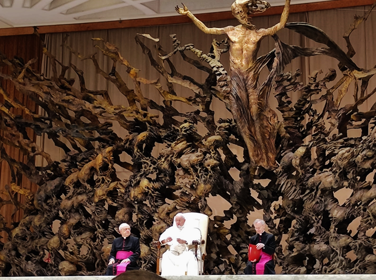 DIOCESI – “Cari fratelli e sorelle, la speranza è una realtà corale! Guardate, alle mie spalle, la scultura del Cristo Risorto, opera dell’artista Pericle Fazzini, voluta da San Paolo VI perché dominasse questo palco e quest’aula”. Con queste parole Papa Francesco durante il discorso ai rettori, docenti, studenti e personale delle Università e Istituzioni Pontificie Romane ha iniziato a parlare dell’artista Grottammarese e della sua opera presente nell’aula Paolo VI.