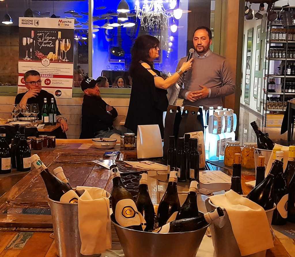 SAN BENEDETTO DEL TRONTO – Si è svolta venerdì 24 febbraio, alle ore 20.30, presso il ristorante “Cucina al porto” di San Benedetto del Tronto, la seconda delle dieci serate di valorizzazione enogastronomica e turistica delle Marche, nate per avviare un’azione promozionale specifica per il settore vitivinicolo di qualità marchigiano, oltre alle produzioni agroalimentari, con il coinvolgimento del mondo della ristorazione e degli operatori turistici. Il progetto, chiamato “Le Marche a Sorsi”, fa parte di un progetto più ampio denominato “Enoturismo Marche: dalla vigna alla tavola” promosso e finanziato dalla Regione Marche – Coordinamento della Comunicazione a cura del Servizio Politiche Agroalimentari. Ditta capofila è l’azienda “Centro Servizi e Organizzazione Eventi Amici Anna” che da anni lavora sul territorio grottammarese e limitrofo offrendo consulenza e servizi a famiglie e imprese. Presenti alla cena, oltre ad Anna Amici, organizzatrice dell’evento, e a Paola Polidori, titolare dell’azienda “Go Fhort Forever” che ha dato un importante contributo alla realizzazione dell’evento, anche Giovanni Gagliardi dell’Azienda Terre dei Calanchi Piceni e Giacomo Centanni dell’Azienda Centanni, i quali hanno raccontato la storia delle loro cantine e promosso le eccellenze che producono. A condurre la serata l’ottima Pamela Giorgini.