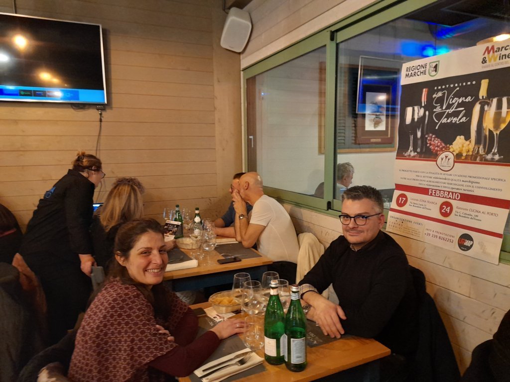 Grande la soddisfazione del ristoratore Marco Falà, il quale ha dichiarato: “Abbiamo scelto piatti che potessero celebrare al meglio i prodotti del territorio e, a giudicare dagli applausi riscossi a fine cena dallo chef e dallo staff, mi sento di affermare con cortezza che la clientela sia rimasta molto soddisfatta. Ringrazio anche il sommelier Millanaccio che ha saputo abbinare degli ottimi vini che hanno esaltato ancora di più il gusto dei piatti. Il nostro ristorante è presente nel mercato della ristorazione dal 2018, siamo quindi una realtà abbastanza nuova che, però funziona bene, anche grazie ad una divisione precisa dei compiti tra me e le altre due socie. Ognuno, infatti, si occupa di quello che sa fare bene: io della cucina, Marika Partemi della gestione della sala e Manuela Clementi dell’amministrazione. Generalmente facciamo piatti legati al mare, sia alle nostre Marche sia un po’ anche alla Spagna: facciamo infatti una paella che in zona è unica. Stasera abbiamo voluto cimentarci in qualcosa di diverso: abbiamo cercato, infatti, di unire i sapori del mare con quelli dell’entroterra. È stata un’esperienza di crescita sia come cuochi sia nella conoscenza di alcune aziende del territorio con cui non avevamo contatti”.