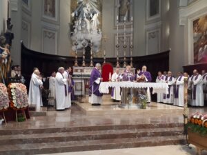 RIPATRANSONE – Si sono svolti giovedì 2 marzo, alle ore 10:30, presso il Duomo di Ripatransone, i funerali di Teresa De Angelis, madre di don Tommaso e Gabriella Capriotti. Alla celebrazione eucaristica, presieduta dal vescovo Carlo Bresciani, hanno partecipato numerosi sacerdoti della Diocesi, tra i quali anche il vicario generale don Patrizio Spina.