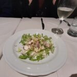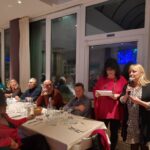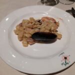 Tre, invece, sono state le cantine promosse durante la cena dal Sommelier Ivan Millanaccio, appartenente all’AIS Marche (Associazione Italiana Sommelier della nostra regione) – delegazione di Ascoli Piceno. “Ad ogni piatto abbiamo abbinato un vino del nostro territorio. Per i primi due antipasti ho scelto una Passerina spumantizzata della Cantina Collevite di Monsampolo del Tronto, una bollicina caratterizzata da grande freschezza che si abbina benissimo con degli antipasti di pesce delicati e leggeri. Con le mazzancolle al tartufo e gli gnocchetti allo scoglio, invece, ho proposto una Passerina ferma IGT della Tenuta Cocci Grifoni di San Savino di Ripatransone, la San Basso 2022, che è un bel concentrato di freschezza e profumi che, a mio giudizio, ben si sposa con il gusto deciso di questi piatti. Ai secondi infine ho abbinato un Pecorino Offida DOCG 2021 della Tenuta Santori di Ripatransone, che, con la sua sapidità e mineralità, ha ben accompagnato l’ombrina e la frittura. Oltre alle eccellenze delle cantine, stasera abbiamo assaggiato anche un’ottimo ghiaccio di Anice Verde di Castignano dell’Azienda Terre dei Calanchi Piceni, un presidio Slow Food del nostro territorio che è sempre molto apprezzato dai commensali”.