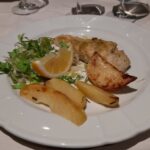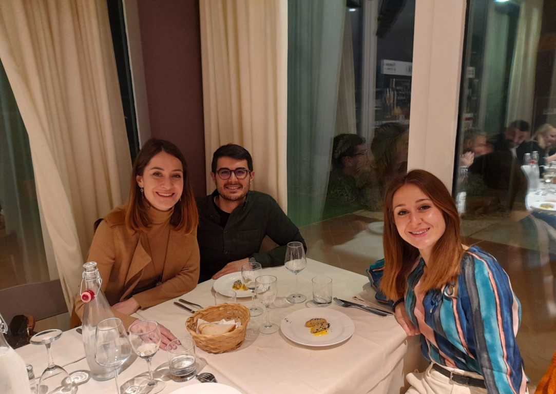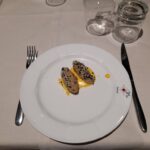 “Per questa serata speciale – ha dichiarato lo Chef Professionale Diplomato Maurizio Alessi – ho proposto un sontuoso antipasto composto da polipo e patate di montagna, quenelle di baccalà su crema di zafferano e mazzancolle al profumo di tartufo; poi abbiamo servito un primo dal sapore “mare e monti” e più precisamente gnocchetti di patate di montagna allo scoglio; a seguire ho preparato i due secondi, ovvero trancio di ombrina in panure e frittura di paranza dell’Adriatico; abbiamo infine concluso in dolcezza con un tiramisù all’anice”.