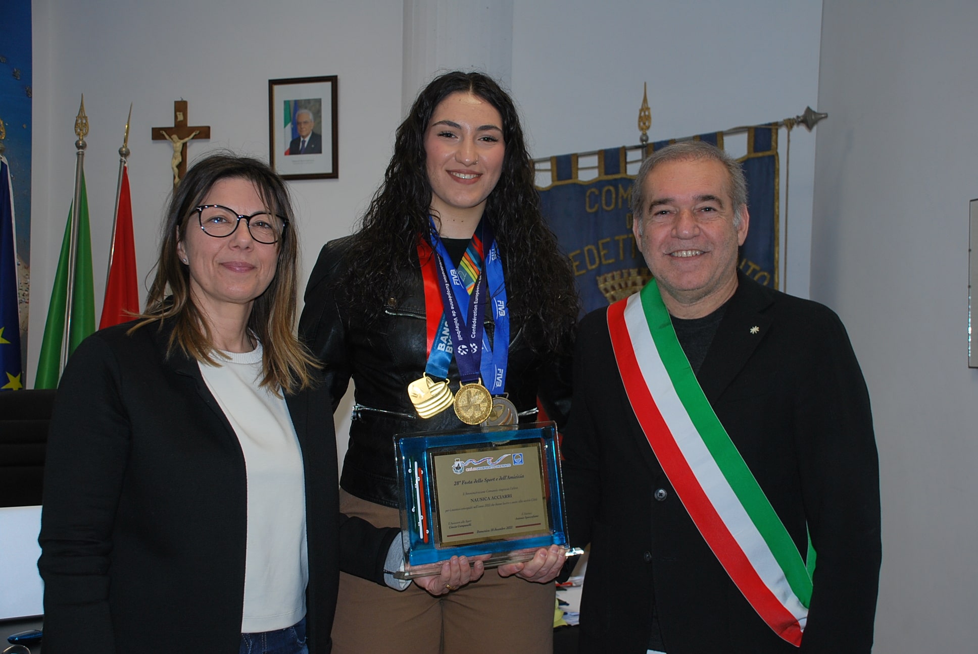 Il riconoscimento era stato attribuito a Nausica Acciarri già lo scorso dicembre nel corso della Festa dello Sport e dell’Amicizia svoltasi al Palasport “Speca” insieme ad altri atleti che hanno portato lustro a San Benedetto con i loro successi, ma per impegni personali non le era stato possibile presenziare alla cerimonia.