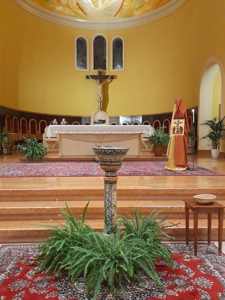La serata si è aperta con la consegna ad ogni fedele presente di una conchiglia contenente dell’incenso e di una locandina creata appositamente per l’occasione che da un lato riportava un celebre icona russa del XV secolo e dall’altro il Salmo 30 (29), il canto di dedicazione al tempio, la lode di ringraziamento a Dio che Davide compie per ringraziare il Signore di aver risposto alle sue chiamate. Prima del canto comunitario del Salmo scelto, Francesca Russo ha proceduto a spiegare il significato dell’icona scelta come copertina dell’incontro: