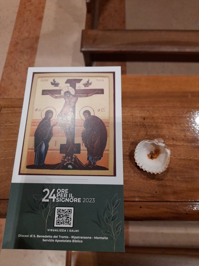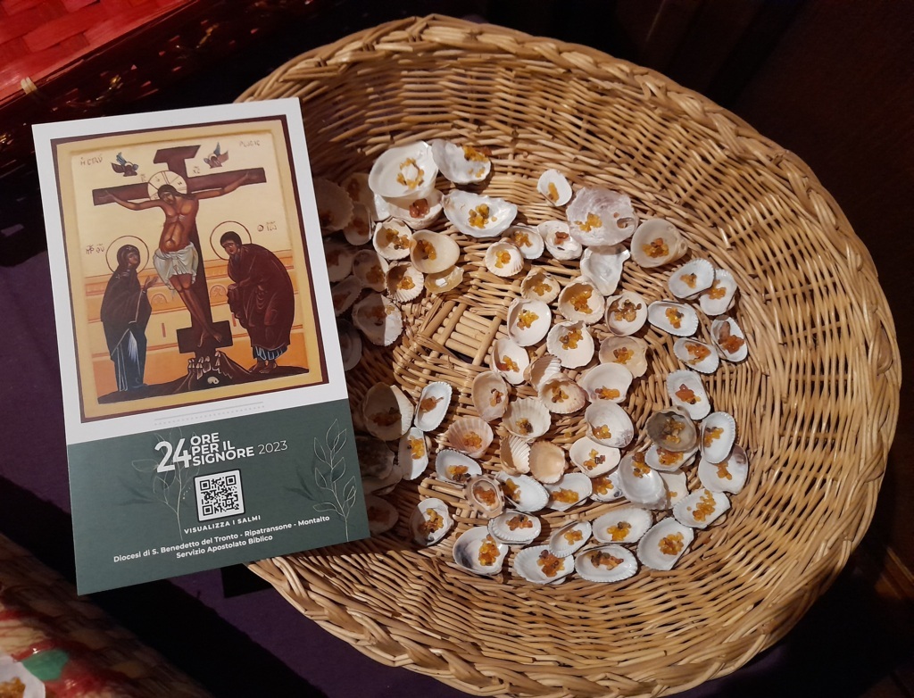 Alle ore 23:00 è avvenuta l’esposizione del Santissimo e tutti i fedeli sono stati invitati a versare, in un catino usato come turibolo, l’incenso presente nella conchiglia ricevuta all’inizio della celebrazione, così da poterlo bruciare e far salire verso il cielo il suo profumo, in segno di offerta personale della propria preghiera e della propria vita, un segno al tempo stesso di adorazione e di dono al Signore.