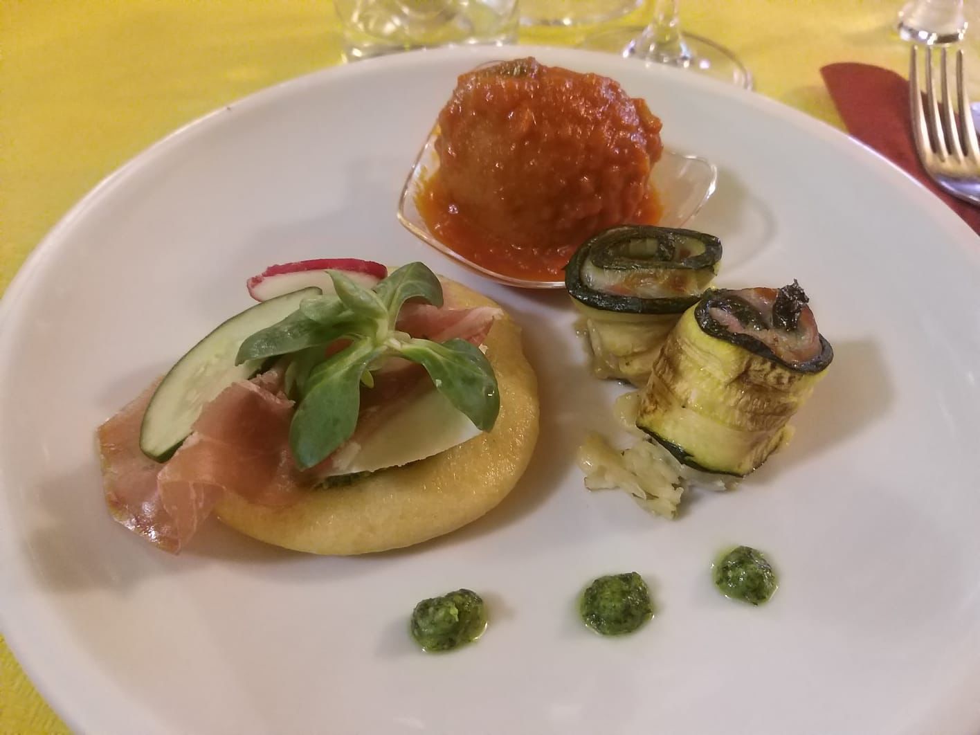 Quattro invece saranno le aziende agroalimentari che forniranno le materie prime per la cena: Bosco d’Oro di Ascoli Piceno, Cartofaro Agribiologica di Ascoli Piceno, Azienda Agricola Mestechì di Castignano, Macelleria Antonio Filotei di Pescara del Tronto. Questo il menu che delizierà il palato degli ospiti di Alessio e Cristina Silvestri, titolari di Senduiccerì: tagliere misto con norcineria e pecorino della Macelleria Filotei servito con frittella artigianale; crostone con salsiccia e tartufo Bosco d’Oro; timballino di verdure; trancio di crostata con confetture e vino cotto dell’Azienda Agricola Mestechì.