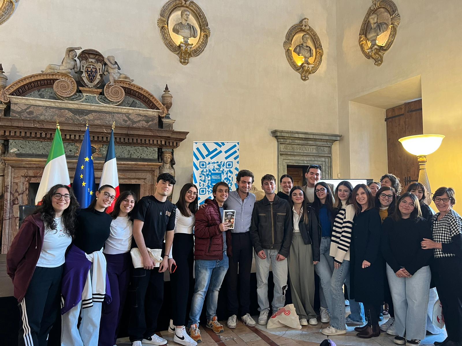 SAN BENEDETTO DEL TRONTO – Per l’occasione circa cento studenti delle sezioni Esabac provenienti dalle regioni del centro e del sud Italia si sono riuniti a Roma a Palazzo Farnese, sede dell’Ambasciata di Francia in Italia, accolti dall’ambasciatore Christian Masset e da Françoise Chandernagor, accademica e vice presidente dell’Académie Goncourt.