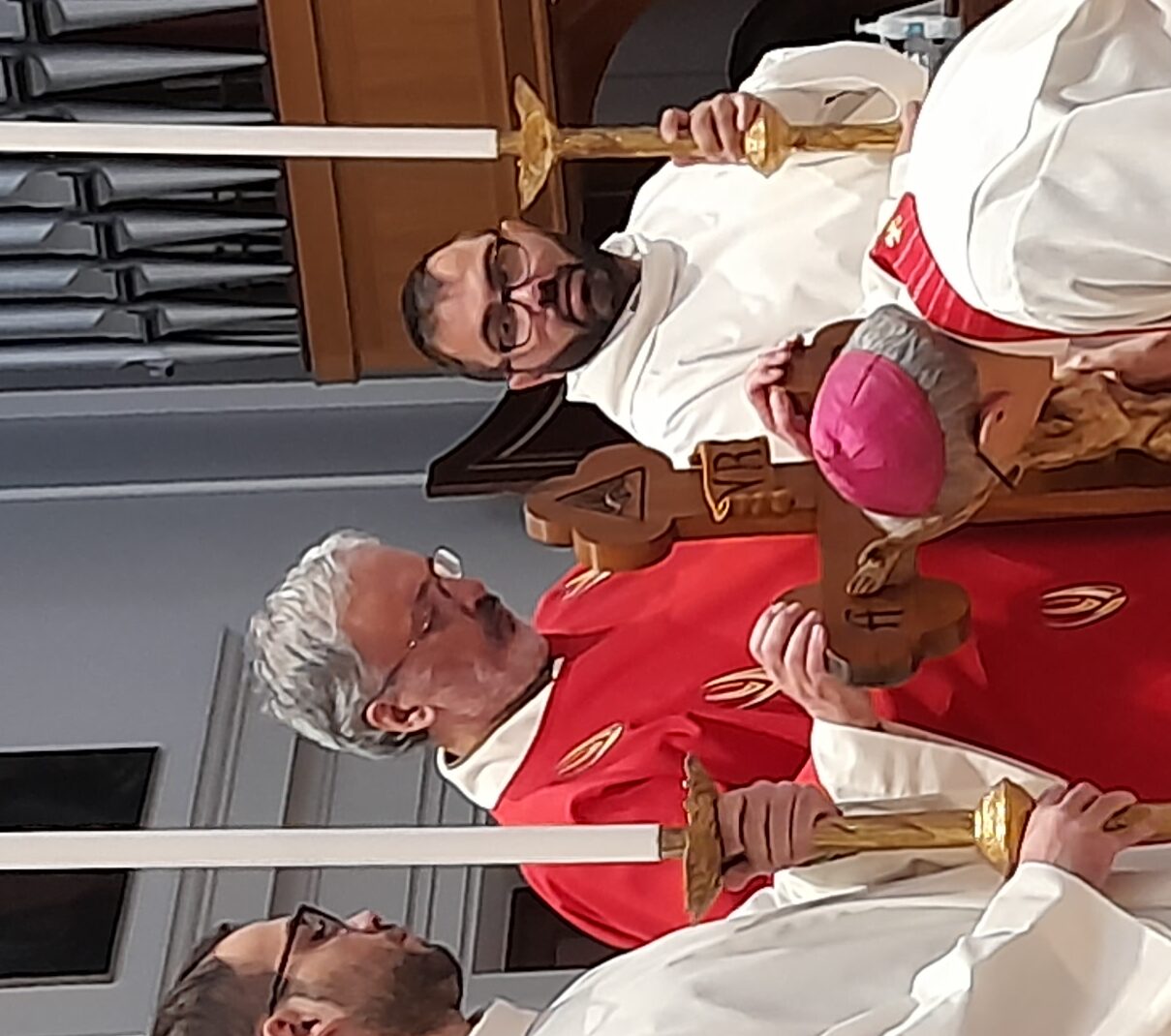 Subito dopo l’omelia, il diacono Walter ha introdotto le intenzioni della Preghiera Universale, concluse ciascuna con l’orazione del vescovo Carlo. I fedeli presenti hanno pregato prima per la Santa Chiesa, per papa Francesco, per il vescovo Carlo, per i sacerdoti, i diaconi; poi per i catecumeni e per l’unità dei cristiani; per gli Ebrei, per coloro che non credono in Cristo e per coloro che non credono in Dio; infine per i governanti, per coloro che soffrono a causa della guerra e per tutti coloro che vivono un momento di prova.