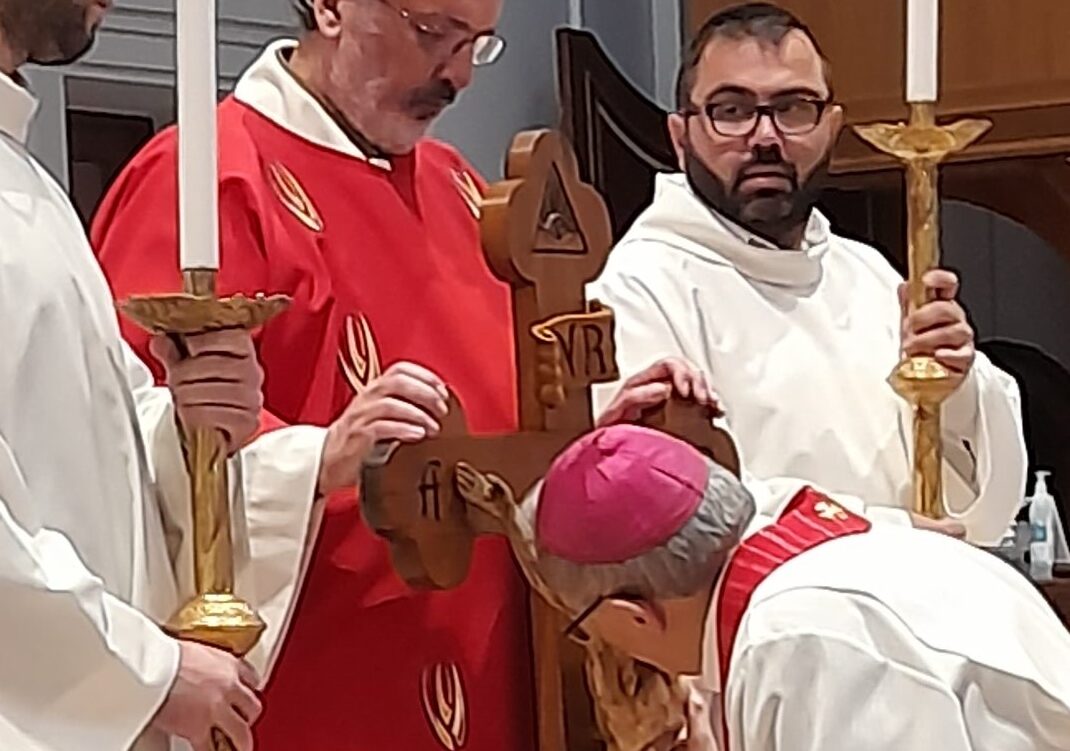 La celebrazione è proseguita poi con l’adorazione della Croce che è stata esposta dal diacono Pietro sui gradini dell’altare per il bacio da parte dei fedeli. Particolarmente commovente è stato il gesto di un fedele che, non potendo chinarsi per baciare la croce, l’ha abbracciata. Spesso l’animo umano cerca di allontanare o addirittura rifiutare il dolore, la sofferenza, la croce che la vita gli riserva; quel gesto, invece, ha ricordato a ciascun fedele presente che anche noi, come Gesù, siamo chiamati ad accogliere, ad abbracciare la nostra croce. Dopo i riti di Comunione, la croce è stata posta sopra l’altare maggiore, l’altare delle reposizione è stato dismesso e le ostie rimaste, come consuetudine, sono state messe nel tabernacolo.