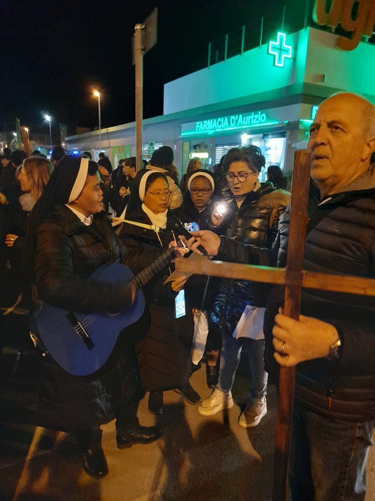 Queste le parole che il vescovo Bresciani ha detto ai fedeli presenti: “Abbiamo meditato che questa realtà della croce, per tanti aspetti, è quella che si ripete nella vita di ogni giorno. E noi possiamo esserne parte. Possiamo decidere se essere tra quelli che condannano o tra quelli che, con piccoli gesti, seminano speranza, conforto e sostegno, aiutandoci a vivere meglio la nostra vita. In questa via della croce ci siamo tutti. Siamo tutti partecipi nel distruggere o nel creare speranza. E di speranza abbiamo veramente molto bisogno noi che, a volte, siamo provati da tante situazioni e cadiamo nello scoraggiamento. Altre volte, invece, possiamo dare segni di consolazione e di speranza di un mondo diverso: magari non siamo in grado di togliere tutto il male del mondo, ma possiamo essere una luce di speranza per qualcuno”.