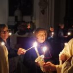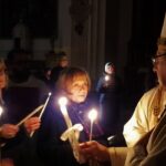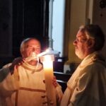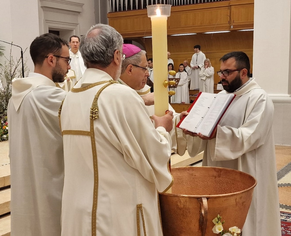 Tra poco celebreremo il battesimo di alcuni adulti: in questa notte, in cui è sconfitta la morte e rinasce la nuova vita dall’acqua e dallo Spirito del Risorto, tutti ricordiamo anche la nostra rinascita in Cristo attraverso il battesimo. La vita, ricreata nel Risorto, è donata a chiunque si lascia immergere nell’acqua della resurrezione per rinascere con lui alla vita nuova dello Spirito. È ridonata a noi, battezzati in Cristo risorto, se nella fede camminiamo nella luce del Risorto. Nella risurrezione di Cristo facciamo memoria anche della nostra rinascita in lui. Cantiamo allora alleluia, perché ci è ridonata la vita che rinasce dal male e dal peccato.