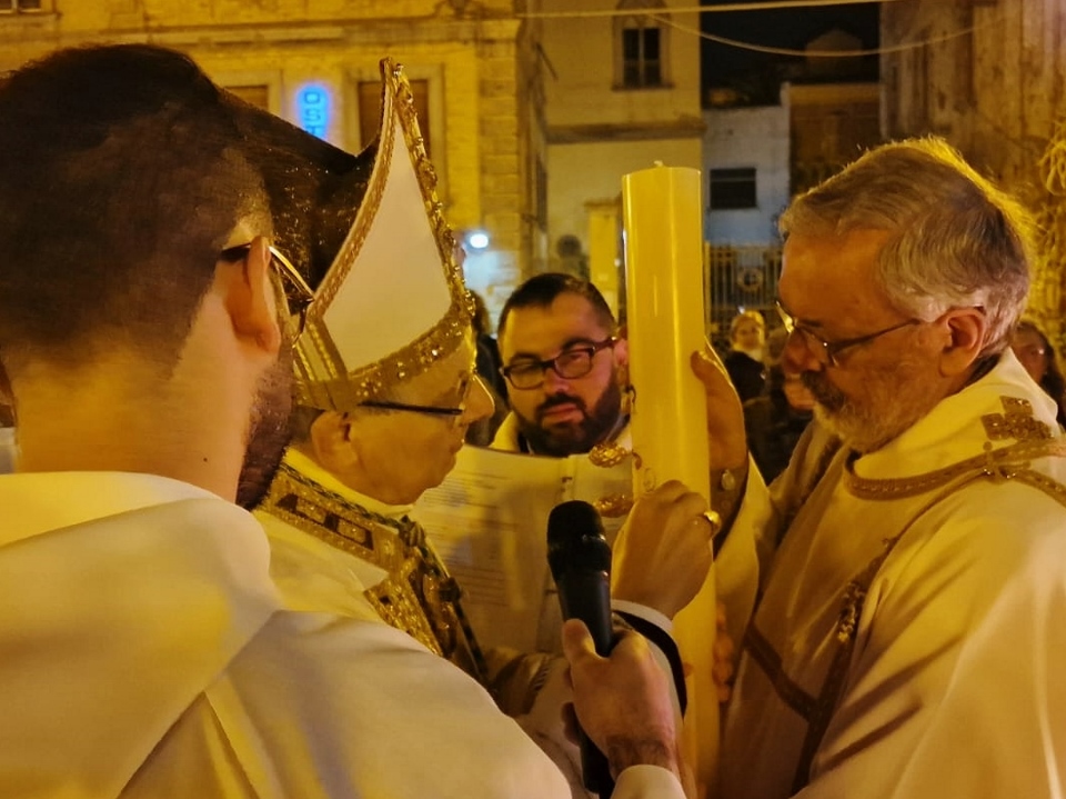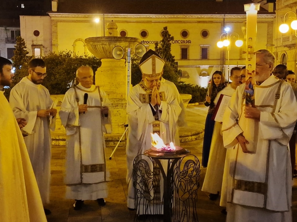 DIOCESI – Sabato 8 aprile alle ore 22.00 ha avuto inizio in Piazza Nardone la Veglia di Pasqua, seguita dalla Santa Messa durante la quale 5 catecumeni hanno ricevuto il Battesimo, la Cresima e l’Eucaristia.