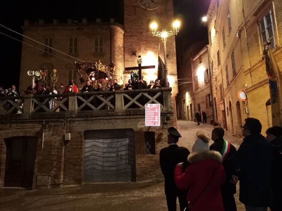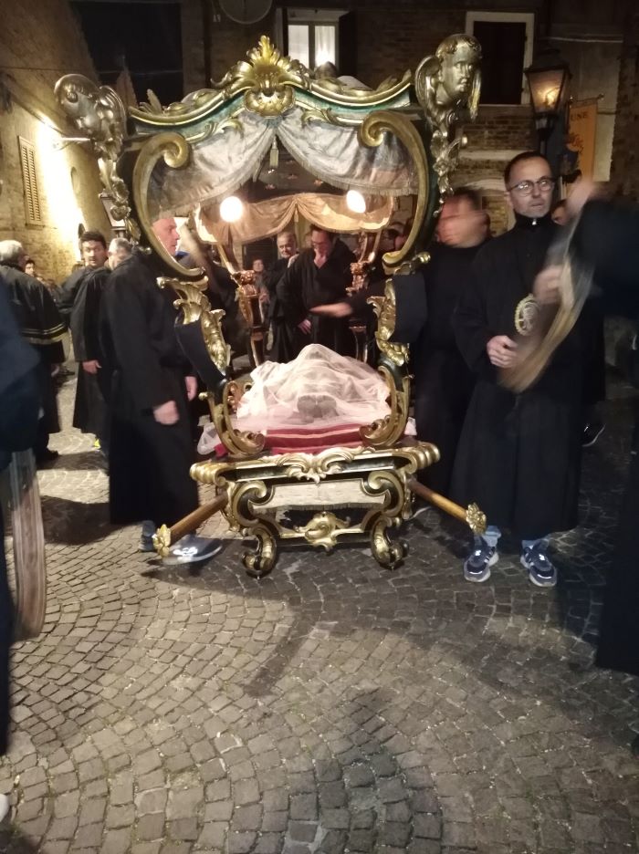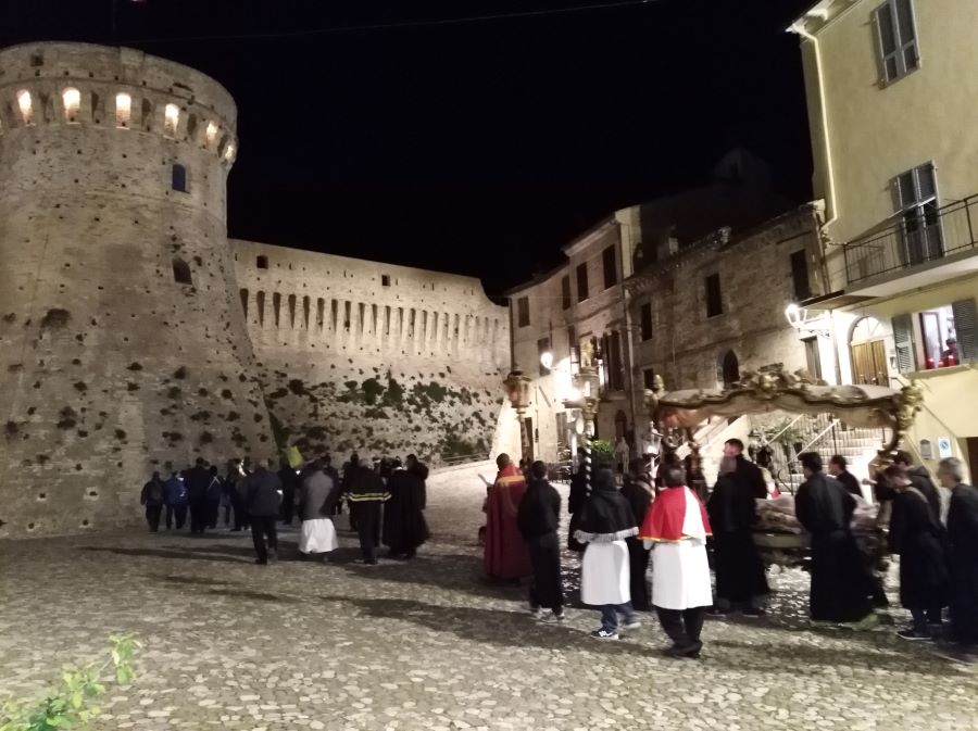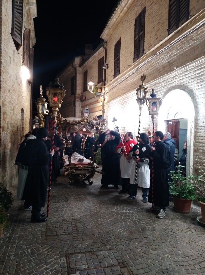 ACQUAVIVA PICENA – Venerdì 7 aprile ad Acquaviva Picena si è snodata per le vie del centro storico, la processione del Cristo Morto. Gli acquavivani e non solo, hanno seguito con fede, devozione e in preghiera, la bara con il corpo di Gesù.
