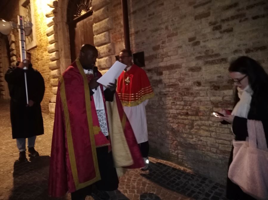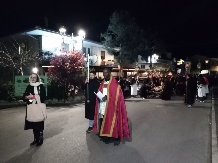 Un ringraziamento a tutti coloro che hanno collaborato alla buona riuscita della processione e che hanno accompagnato il Cristo Morto: il parroco don Giuseppe Giudici, padre Emil e padre Giuliano dei frati Agostiniani Scalzi del convento di san Lorenzo di Acquaviva Picena, padre Derek che con le sue meditazioni ha “guidato” la preghiera, le Confraternite: Cristo Morto, Madonna del Rosario, Santissimo Sacramento, Terziarie agostiniane Madonna della Consolazione, il sindaco di Acquaviva Picena Infriccioli e tutta l’Amm.ne Com.le, il Maresciallo dei Carabinieri Galasso, la Protezione Civile e il Corpo Bandistico città di Accumoli.