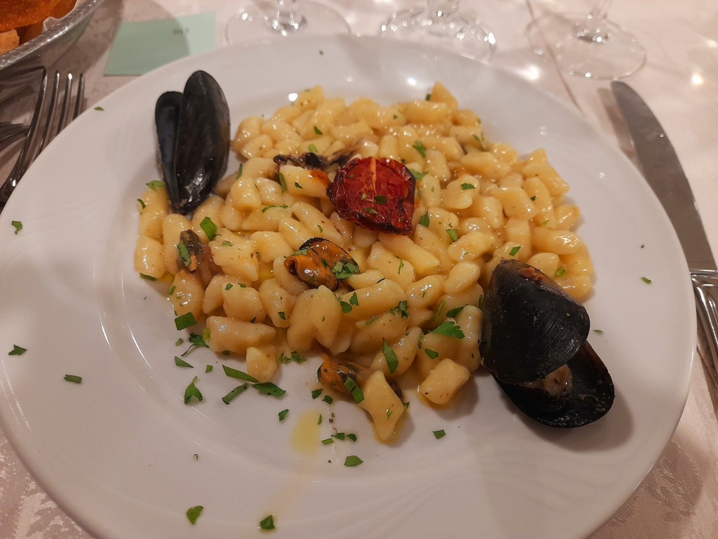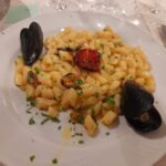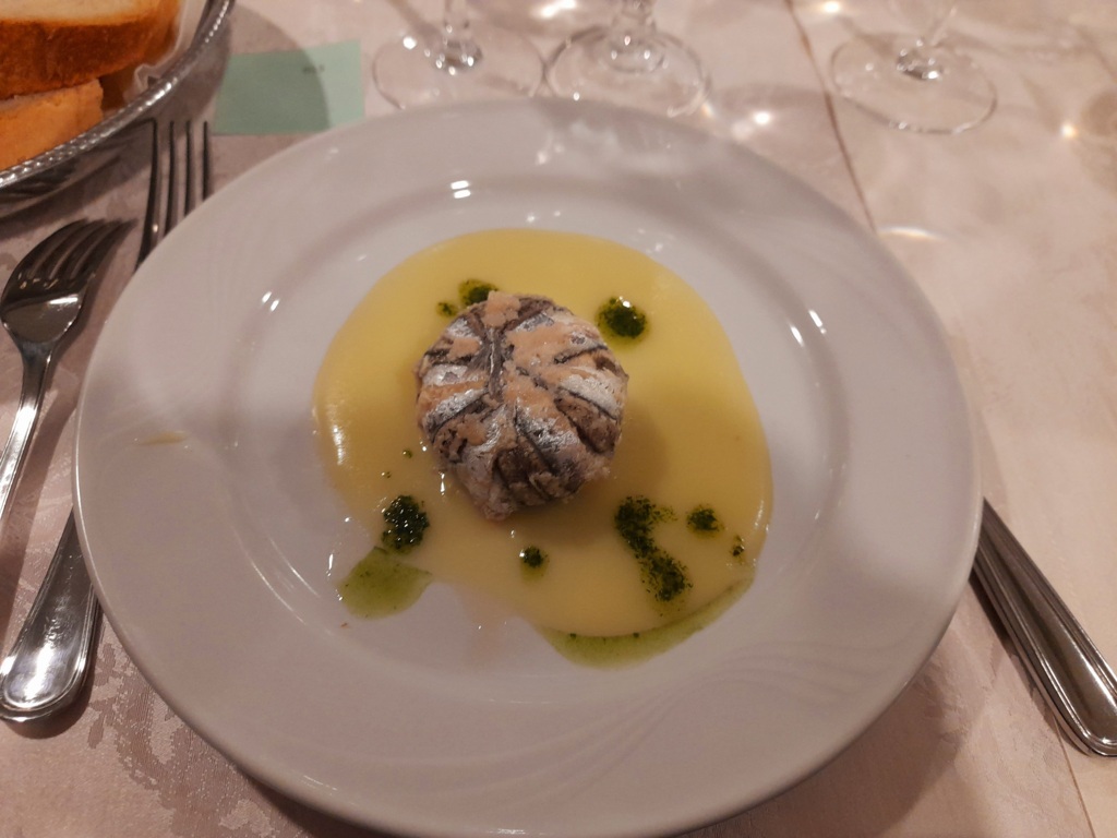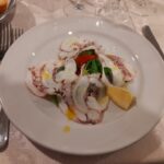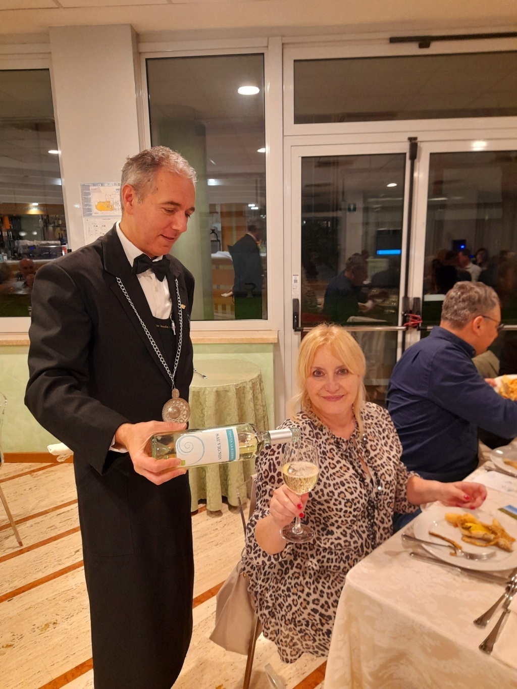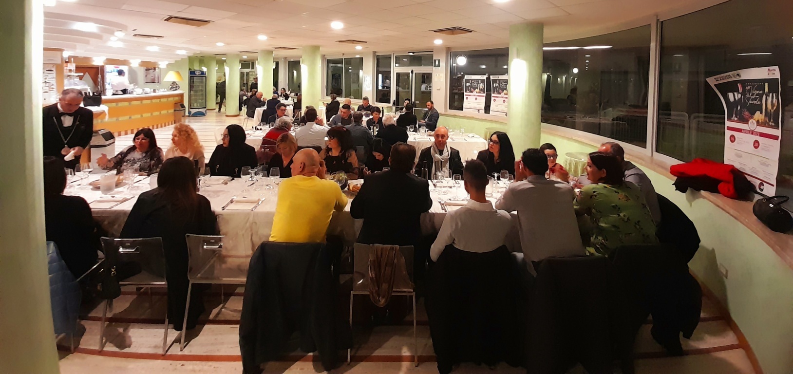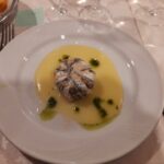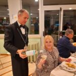 Tre sono state le aziende enologiche promosse durante la cena dal Sommelier Ivan Millanaccio, appartenente all’AIS Marche (Associazione Italiana Sommelier della nostra regione) – delegazione di Ascoli Piceno, il quale ha abbinato ad ogni piatto un vino di una cantina diversa: “Con il ricco antipasto, costituito da carpaccio di polipo su letto di Soncino e tortino di alici e patate, ho abbinato un Solerzia de “La Cantina di Paglia” di Offida, un vino bianco delicato ricavato da uve Passerina. Con il primo, invece, gnocchi di patate con cozze e tartufo, ho accompagnato un Crivellino della Cantina “La Fontursia” di Ripatransone, un vino Falerio Pecorino biologico caratterizzato da una buona struttura e una certa morbidezza che ben si è sposato con il piatto. Per il secondo, una frittura dell’Adriatico con verdure alla Julienne accompagnata da insalata di stagione, ho scelto un Sauvignon della Tenuta Agricola “La Riserva” di Offida, un vino fresco e profumato proveniente da un vitigno internazionale impiantato nel nostro territorio. Abbiamo infine concluso la serata con una Delizia di Anice dell’Azienda Agricola Terre dei Calanchi Piceni che ha fatto da cornice ad un semifreddo al croccantino caramellato”.