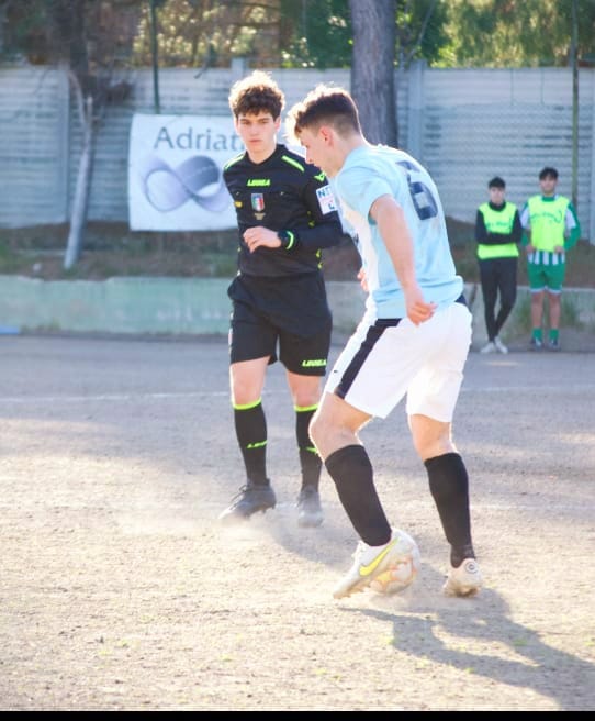 Sono diventato arbitro il giorno 4 dicembre 2021. Ad due mesi dal superamento dell’esame, ho arbitrato la mia prima partita, precisamente il 16 febbraio 2022. Si trattava di una partita del Campionato Provinciale Under 15 Maschile, quella tra il Pedaso e il Porta Romana a Pedaso. Ero molto agitato. Già appena mi hanno designato il lunedì precedente, sino stato preso dal timore di non essere all’altezza. Ma devo dire che non mi sono sentito solo. Sono stato accompagnato da uno dei tutor della nostra sezione, Nicola Di Pierro, il quale mi ha atteso al campo, mi ha fatto fare un sopralluogo sul terreno di gioco e mi ha spiegato come mi sarei dovuto muovere durante la partita, dandomi delle indicazioni sugli spostamenti. Durante i 90 minuti, il tutor non mi ha mai detto quando fischiare, ma mi ha solo dato consigli sugli spostamenti, quindi il suo è stato un supporto soprattutto tecnico e morale. Un fatto simpatico che ricordo di quel giorno è che i primi fichi non mi uscivano! Nonostante la consapevolezza del fallo commesso, non riuscivo a fischiare e ho lasciato correre in più di un’occasione. Poi, dopo una ventina di minuti, mi sono detto che prima o poi avrei dovuto fischiare e mi sono convinto! Poi fortunatamente è andato tutto bene. Ho dato un solo cartellino giallo per le proteste che un giocatore ha espresso in modo ripetuto e scomposto per aver fischiato un intervento tecnico da lui non accettato. Per il resto è stata una partita tranquilla. Anzi, ad un certo punto, mi stavo divertendo così tanto che non avrei voluto fischiare la fine.