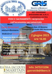DIOCESI – “L’esperienza fatta da tre anni, della formazione on line, organizzata da quando è scoppiata l’epidemia da Covid-19, ci ha fatto rendere conto che le persone vogliono formarsi e vogliono approfondire il proprio credo cattolico. Per tale ragione ci siamo convinti ad organizzare il prossimo convegno nella doppia modalità, sia in presenza sia on line”. – È con queste parole che la Prof.ssa Giancarla Perotti presenta il XVI Convegno Diocesano del G.R.I.S. (Gruppo di Ricerca e Informazione Socio-religiosa) dal titolo “Fede e Sacramenti: reciprocità nell’economia sacramentale“, che si terrà venerdì 2 giugno, alle ore 16:00, presso la Parrocchia Sacra Famiglia, a Porto d’Ascoli di San Benedetto del Tronto.