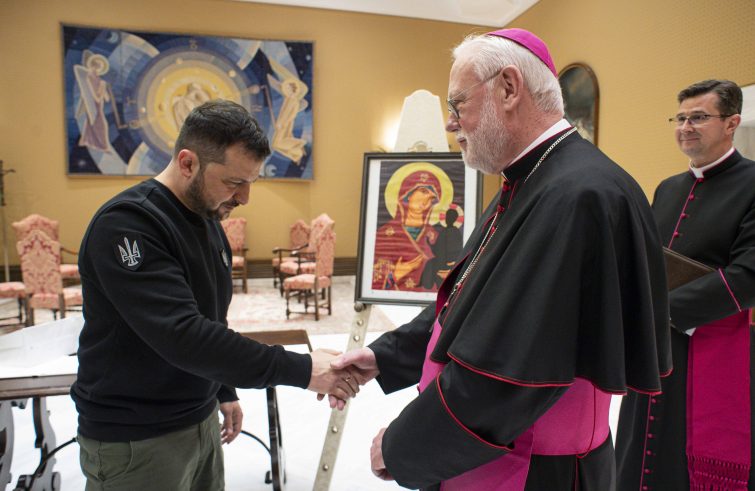 Dopo l’udienza con il colloquio privato con il Papa, il presidente dell’Ucraina, Volodymyr Zelensky, ha incontrato mons. Paul Richard Gallagher, segretario per i Rapporti con gli Stati e le Organizzazioni internazionali della Segreteria di Stato. “Durante i cordiali colloqui con mons. Gallagher – informa la Sala Stampa della Santa Sede – ci si è soffermati anzitutto sull’attuale guerra in Ucraina e sulle urgenze collegate ad essa, in particolare quelle di natura umanitaria, nonché sulla necessità di continuare gli sforzi per raggiungere la pace”. “L’occasione è stata propizia anche per trattare alcune questioni bilaterali, relative soprattutto alla vita della Chiesa cattolica nel Paese”, si legge ancora nel comunicato.