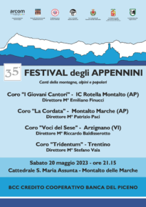 Questa suggestiva riflessione porta la firma del M° Mauro Pedrotti, direttore del mitico Coro della SAT di Trento, le cui note riecheggiano ancora nella fantasia e nei ricordi degli appassionati che da 35 anni gremiscono la Cattedrale Santa Maria Assunta di Montalto Marche, per ascoltare il meglio della coralità popolare, proposto annualmente dal Coro “La Cordata” con l’organizzazione del Festival degli Appennini. I canti eseguiti narrano per lo più di vicende umane dolorose, legate al duro lavoro e alla guerra, ma anche di situazioni gioiose, come le antiche feste del grano e della vendemmia, i corteggiamenti e le serenate. I canti popolari e i canti di ispirazione popolare sono autentici quadretti di musica e poesia, frutto del paziente e qualificato lavoro di ricerca di etnomusicologi. Il compito di rielaborarli ed armonizzarli è generalmente affidato a musicisti raffinati nel gusto musicale, mentre ai cori spetta il passaggio finale di restituirli al popolo con il canto, nella maniera più qualificata.