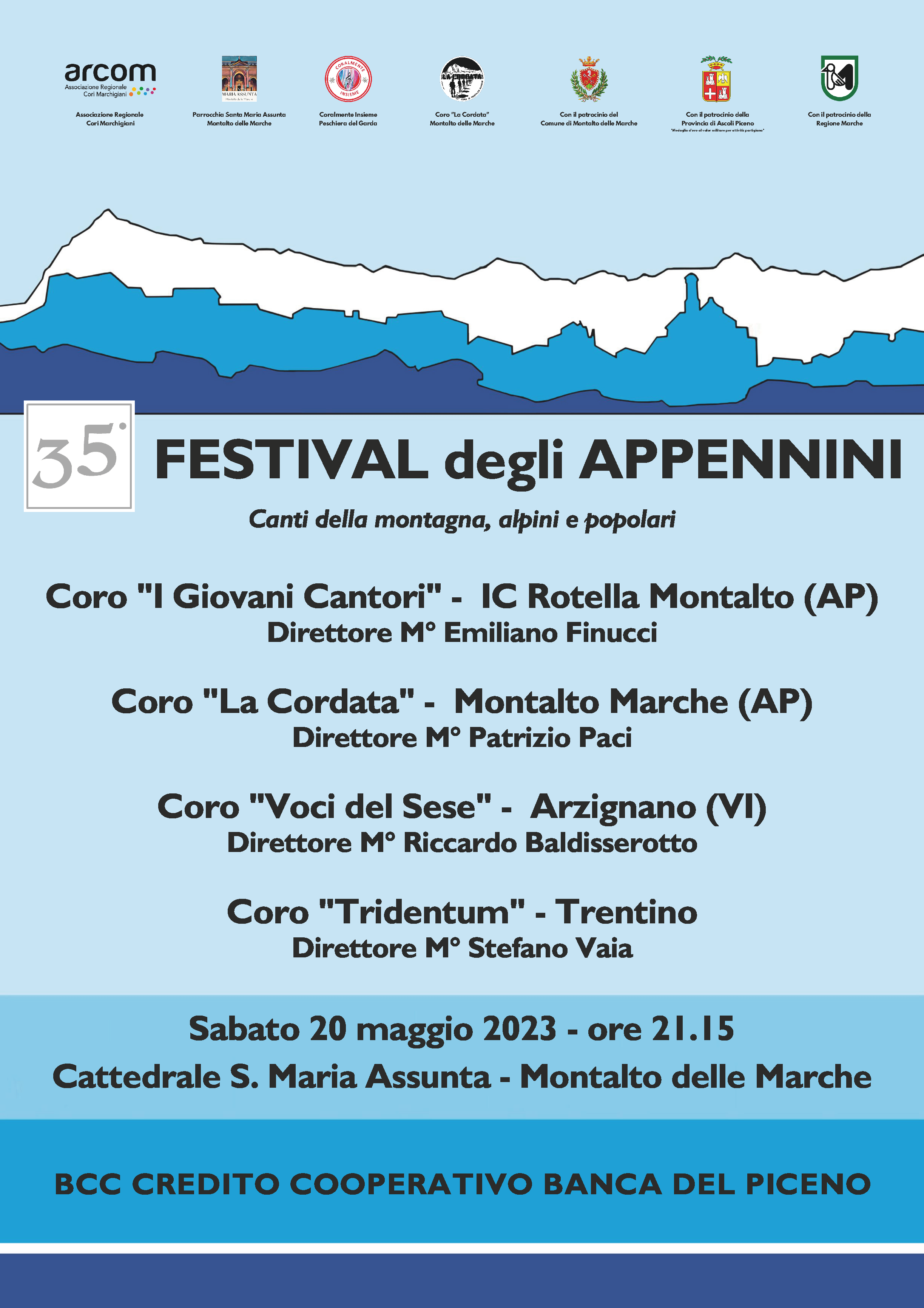 Per questa speciale edizione del 35° Anno di Fondazione, che si svolgerà sabato 20 maggio alle ore 21:00, presso la Concattedrale Santa Maria Assunta di Montalto, il Coro “La Cordata” ha pensato di affidare l’esecuzione a due prestigiose formazioni corali che annoverano nell’organico cantori con precedenti esperienze nel Coro della SAT di Trento e nel Coro “I Crodaioli di Arzignano, con una breve introduzione del Coro degli Alunni dell’IC Rotella – Montalto che certamente per il futuro garantirà al coro organizzatore un ricambio generazionale di assoluta qualità.