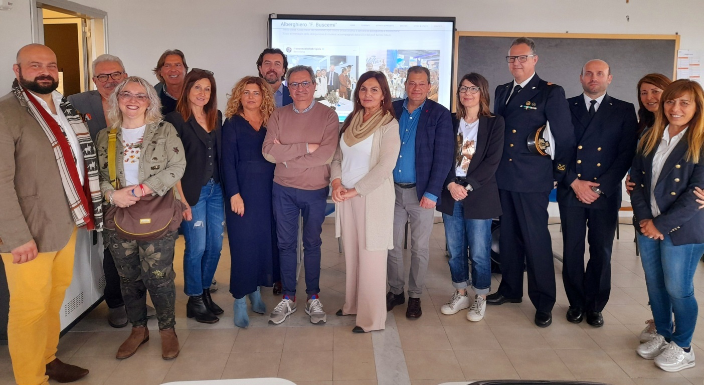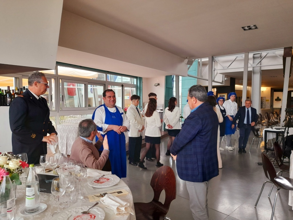 “I giovani studenti – dichiara la Dirigente del Buscemi, Manuela Germani – sono stati scelti in base a tre criteri importanti: un alto rendimento scolastico, una buona conoscenza della lingua inglese, un ottimo comportamento nella condotta. Siamo orgogliosi della loro esperienza perché hanno dimostrato conoscenze e competenze, sono stati in grado di affrontare difficoltà professionali ed umane, senza perdere di vista l’obiettivo e preparando degli ottimi show-cooking per tutti gli ospiti di riguardo nazionali ed internazionali presenti, come il Ministro dell’Agricoltura, della sovranità alimentare e delle foreste, Francesco Lollobrigida, o l’Ammiraglio Nicola Carlone, Comandante Generale del Corpo delle Capitanerie di Porto – Guardia Costiera. La loro quindi è stata un’esperienza impegnativa, ma ottima dal punto di vista dialogico con le altre regioni italiane e soprattutto molto formativa. Hanno dovuto fare servizio in mezzo a tante difficoltà, come ad esempio il limitato spazio tecnico in cui poter lavorare o l’enorme distanza (circa 800 metri) tra la cucina e i frigoriferi in cui erano conservati i prodotti ittici. Hanno dovuto lavorare in maniera incessante e continuativa per giornate intere, senza avere neanche il tempo di fare uno spuntino, tanto era elevato il numero degli ospiti da sfamare: i 2000 pasti al giorno che hanno preparato danno un’idea dell’immenso lavoro svolto. Si sono trovati di fronte anche a situazioni impreviste, come ad esempio la scelta dei vini, che, nonostante le difficoltà, hanno messo in evidenza le competenze che questi giovani hanno acquisito negli anni di studio e lavoro, come la capacità di reagire al bisogno e agli impedimenti. Siamo orgogliosi di aver dato ai nostri studenti un’opportunità così importante per migliorare le loro abilità e per far vivere loro un’esperienza unica che li ha arricchiti anche umanamente“.