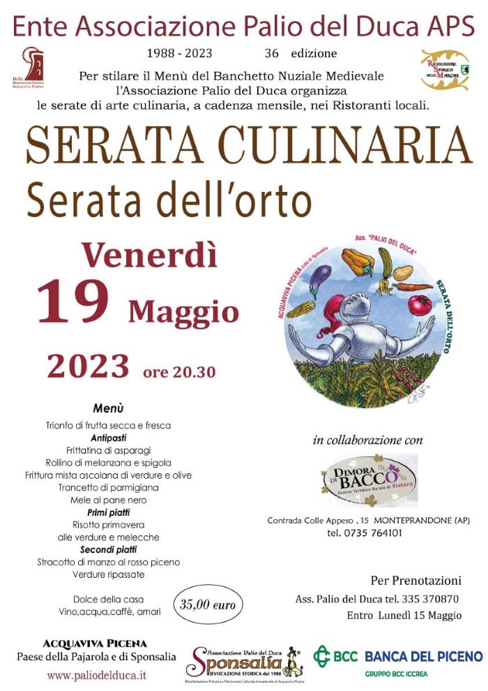 ACQUAVIVA PICENA – Venerdì 19 maggio presso il ristorante “Dimora di Bacco” l’Ente Associazione Palio del Duca presenterà il Drappo che sarà conteso nel Palio dei Bambini il 27 maggio, presente anche l’autore del disegno. La serata culinaria sarà dedicata ai prodotti coltivati nel Medioevo in Italia, “serata dell’orto” è l’occasione, oltre che per assaggiare gli ottimi piatti del ristorante, anche per conoscere le abitudini alimentari e i metodi di cottura tradizionali medievali. Una parte di questo menù sarà anche presente nel menù del Banchetto nuziale medievale domenica 6 agosto all’interno della Fortezza medievale di Acquaviva Picena. Prima tappa importante, quindi, per l’Ente Associazione Palio del Duca aps che sabato 27 maggio tramite il Palio dei Bambini darà un contributo importante alla diffusione della storia medievale e in particolare della storia di Acquaviva Picena e della sua Fortezza, inespugnabile baluardo e ultimo avamposto della città di Fermo nella lotta contro Ascoli Piceno. Acquaviva, per gran parte della sua storia filoimperiale, è il territorio che ha “dato” il cognome alla potente famiglia dei Duchi di Baviera, scesi in Italia al seguito di Carlo Magno e poi passati tra le fila degli svevi Hohestaufen. L’Ente Palio del Duca invita tutti a partecipare alla serata culinaria e al Palio dei Bambini. Diffondere la storia e la cultura per migliorare la società di oggi e di domani e per non dimenticare quanto di importante è stato fatto da chi ci ha preceduto, questo è l’intento dell’Associazione Palio. Salvaguardare l’importante tesoro che racchiude la Fortezza acquavivana e l’intero borgo, è un impegno costante dell’Associazione, la quale ama ricordare ciò che disse Pierre de Blois: “Non si passa dalle tenebre dell’ignoranza alla luce della scienza, se non si leggono e rievocano con passione le opere degli antichi”. L’11 maggio, l’Ente Palio ha ricordato che nel 1993 all’interno della Sala del Palio nasceva l’Associazione; tanti auguri, allora, per i suoi primi trenta anni.