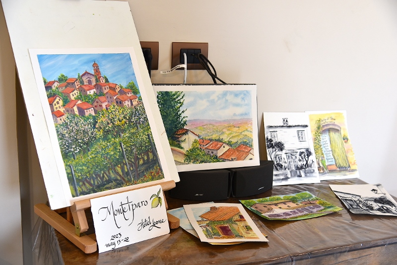 MONTELPARO – Nella settimana scorsa, dal 13 al 20 maggio 2023, Montelparo ha ospitato, nella Boutique Hotel Leone di Madeline e Tim Jones, un gruppo di artisti provenienti dall’Inghilterra, Stati Uniti ed Australia! Erano qui per una “Vacanza di Pittura” con la maestra e artista inglese Sue Ford. Nel pomeriggio del 19 Maggio poi, nella sala destinata alle esposizioni, sono state mostrate le opere realizzate a Montelparo dagli allievi qui presenti: schizzi, acquerelli e acrilici! Il tutto accompagnato da un gradevolissimo brindisi a base di pregiati spumanti e vini locali!