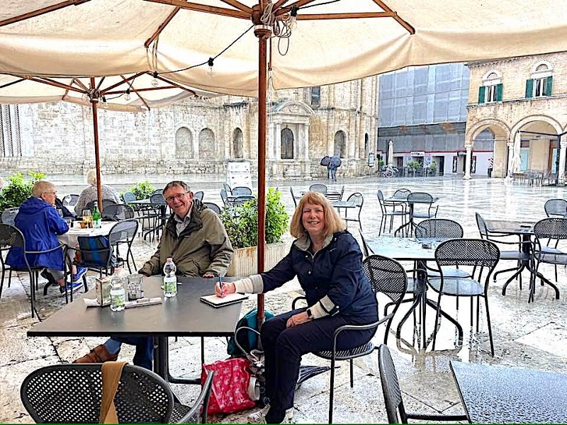 Sue Ford, presa la parola, ha voluto esprimere il suo grande apprezzamento, e quello dei suoi allievi, per il nostro bellissimo, accogliente e particolare paese pieno di storia, folclore, arte, paesaggi unici ed anche di ottima cucina e vini (parole loro!).