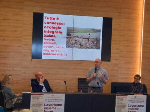 L’introduzione del tema dell’incontro, ovvero “Fare impresa oggi nel solco della Laudato Si’“, è stata affidata al prof. Fernando Palestini, il quale, dopo aver spiegato il significato dell’evento e le sue finalità, ha anche colto l’occasione per ringraziare l’azienda che ha ospitato l’appuntamento.