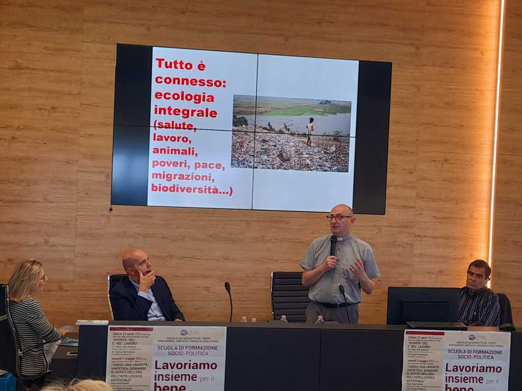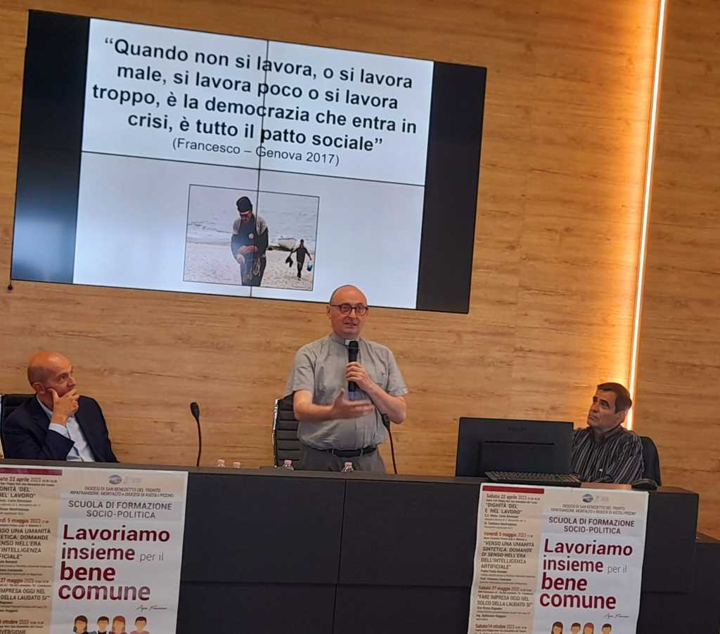 DIOCESI – Quale sia il rapporto tra lavoro e democrazia, quanto conti il legame tra lavoro e comunità, come creare nuovi posti di lavoro, come tenere conto delle connessioni tra il lavoro e tutto ciò che ci circonda, cosa significhi sviluppare un’ecologia integrale, quanto sia profetica l’enciclica “Laudato si’” di papa Francesco e come possa essere utile la sua lettura a chi fa impresa oggi per costruire tutti insieme – imprenditori, lavoratori, sindacati, amministratori – un presente dignitoso e un futuro di pace attraverso lo sviluppo di una economia sostenibile. Sono queste alcune delle riflessioni più importanti emerse durante il terzo incontro del progetto “Lavoriamo insieme per il bene comune” organizzato dalla Scuola di Formazione Socio-Politica delle Diocesi di San Benedetto del Tronto – Ripatransone – Montalto e di Ascoli Piceno, guidate rispettivamente dai vescovi Mons. Carlo Bresciani e Mons. Giampiero Palmieri.