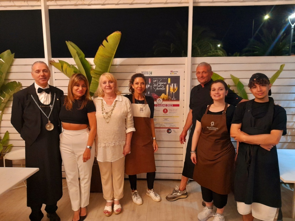 GROTTAMMARE – “Ringrazio Sabrina e Ugo, titolari dello stabilimento balneare e ristorante Peccato Solo D’Estate che ci hanno permesso di realizzare una serata speciale in una splendida struttura con una magnifica vista mare. Ringrazio inoltre la Regione Marche per averci permesso di promuovere le eccellenze enogastronomiche del territorio. Un ultimo ringraziamento va, senza dubbio, a tutti coloro che hanno partecipato a questa e alle serate precedenti”. È con queste parole che Anna Amici, titolare del “Centro Servizi e Organizzazione Eventi Amici Anna” che è ditta capofila del Bando, ha commentato la cena che si è tenuta venerdì 26 maggio, dalle ore 20:30 in poi, a Grottammare, presso lo Chalet Ristorante “Peccato solo d’estate”, il penultimo dei dieci appuntamenti del progetto “Dalla Vigna alla Tavola – Le Marche a sorsi”, realizzato con il contributo dalla Regione Marche – Coordinamento della Comunicazione a cura del Servizio Politiche Agroalimentari. L’evento, nato con l’intento di avviare un’azione promozionale specifica per il settore vitivinicolo e agroalimentare di qualità, è uno strumento ormai consolidato di valorizzazione enogastronomica e turistica del territorio marchigiano.