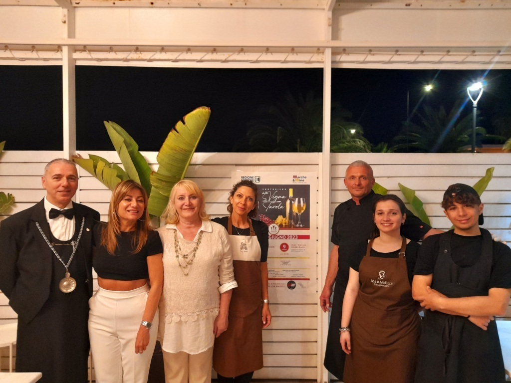 GROTTAMMARE – “Ringrazio Sabrina e Ugo, titolari dello stabilimento balneare e ristorante Peccato Solo D’Estate che ci hanno permesso di realizzare una serata speciale in una splendida struttura con una magnifica vista mare. Ringrazio inoltre la Regione Marche per averci permesso di promuovere le eccellenze enogastronomiche del territorio. Un ultimo ringraziamento va, senza dubbio, a tutti coloro che hanno partecipato a questa e alle serate precedenti”. È con queste parole che Anna Amici, titolare del “Centro Servizi e Organizzazione Eventi Amici Anna” che è ditta capofila del Bando, ha commentato la cena che si è tenuta venerdì 26 maggio, dalle ore 20:30 in poi, a Grottammare, presso lo Chalet Ristorante “Peccato solo d’estate”, il penultimo dei dieci appuntamenti del progetto “Dalla Vigna alla Tavola – Le Marche a sorsi”, realizzato con il contributo dalla Regione Marche – Coordinamento della Comunicazione a cura del Servizio Politiche Agroalimentari. L’evento, nato con l’intento di avviare un’azione promozionale specifica per il settore vitivinicolo e agroalimentare di qualità, è uno strumento ormai consolidato di valorizzazione enogastronomica e turistica del territorio marchigiano.