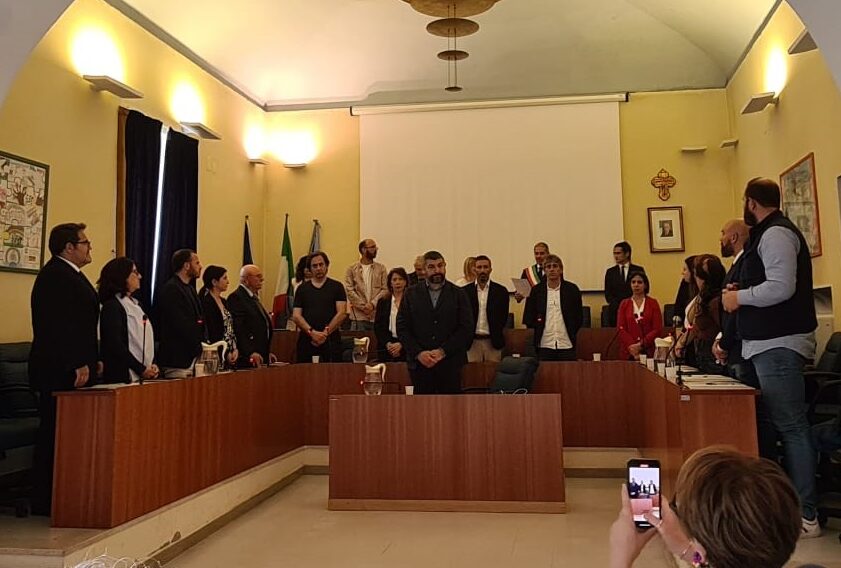 “Lasciare il mondo un po’ migliore di come lo abbiamo trovato. Il mio impegno sarà questo”. Nel primo discorso di mandato, dopo il giuramento sulla Costituzione italiana, il primo cittadino cita Baden Powell fondatore dello scoutismo per appellarsi al senso del bene comune e allo spirito di collaborazione che dovranno permeare le scelte che attendono la nuova Amministrazione comunale: “Ho alle spalle diversi anni da vice sindaco, ma essere sindaco ha un altro peso. In questa esperienza, non posso e non voglio essere da solo: avrò bisogno degli assessori, dei consiglieri di maggioranza e di minoranza e di tutta la struttura comunale. Saranno anni ricchi di sfide, prima fra tutti quella dell’ambiente e del cambiamento climatico che è in corso e che inevitabilmente ci devono impegnare nella cura del territorio per garantire la sicurezza e di conseguenza la cura dei cittadini e chiudo sui giovani, con l’impegno di lasciare un futuro ai nostri figli”.