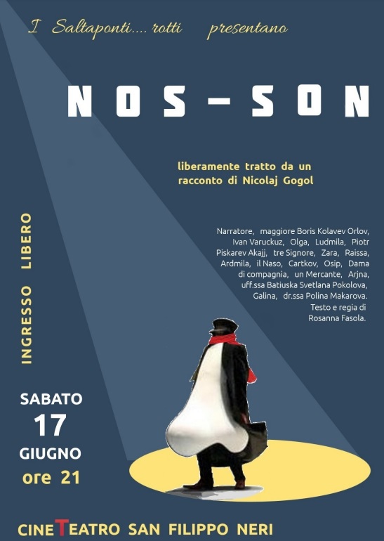 NOS-SON verrà portato in scena dalla Compagnia “I Saltaponti… rotti” sabato 17 giugno alle ore 21 precise nel teatro San Filippo Neri di San Benedetto del Tronto. L’ingresso è libero.