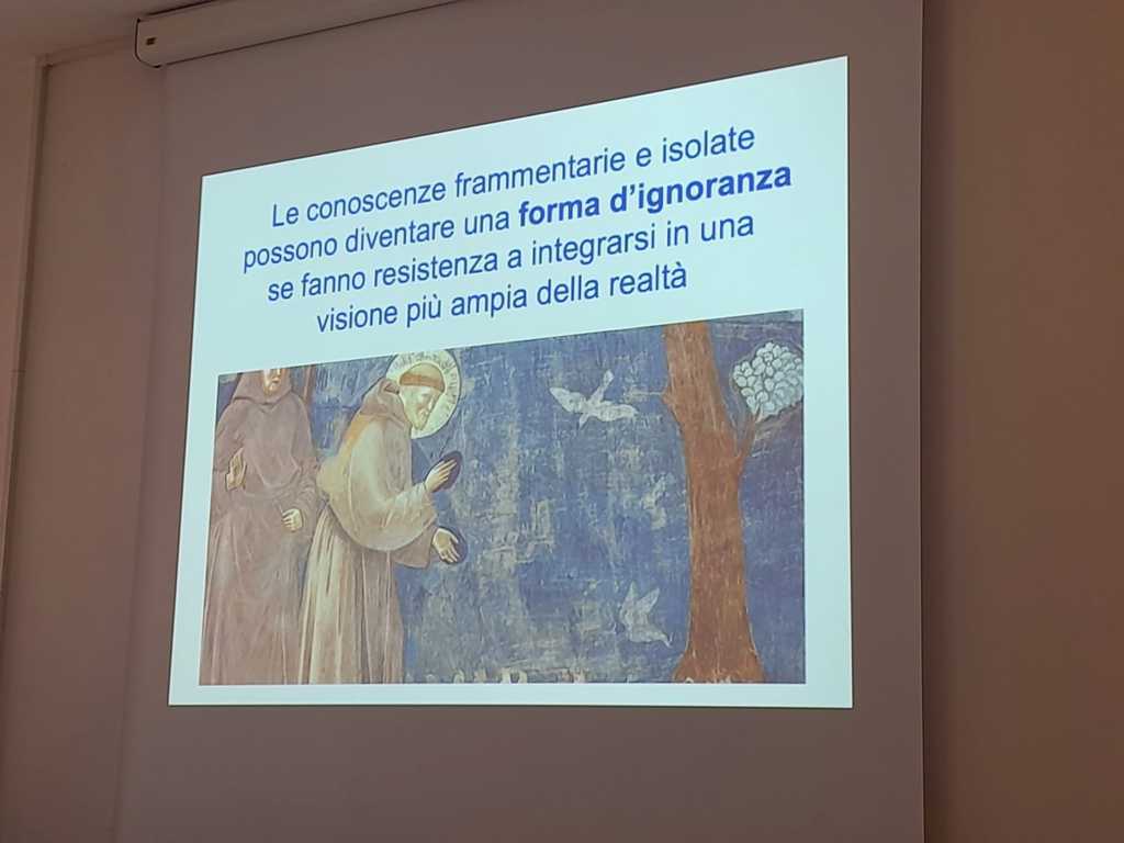 Ha poi aperto i lavori il prof. Fernando Palestini, il quale, oltre a ringraziare don Bignami per la preziosa partecipazione, da ex docente ha esortato gli studenti ad essere attenti e partecipativi, in quanto l’incontro sarebbe stato utile sia come momento di orientamento in uscita in ambito lavorativo per coloro che hanno deciso di terminare gli studi dopo la maturità, sia come momento formativo per tutti, visto che, tra poche settimane, dovranno sostenere l’esame di maturità.