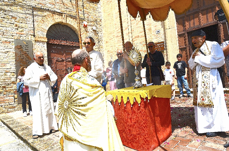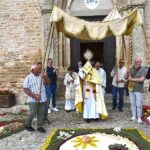 MONTELPARO – La giornata del Corpus Domini, a Montelparo, è iniziata con la celebrazione della Santa Messa nella Chiesa di San Michele Arcangelo. Ha presieduto il Priore/Parroco Don Giorgio Carini con la partecipazione di Padre Giovanni e di Padre Luigi (la sua presenza è stata una bellissima sorpresa per i parrocchiani: egli è tornato, per qualche giorno, dalla sua missione di Cuba!)!