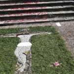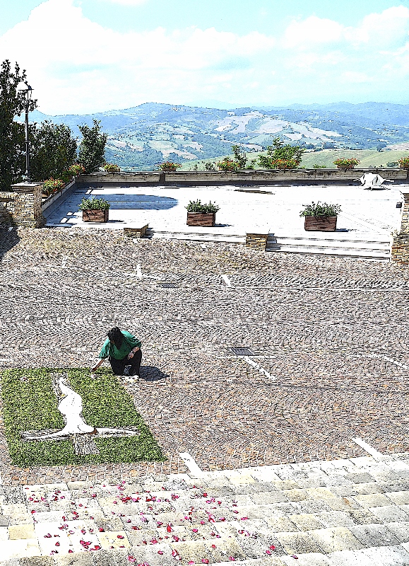 Un particolare e stupendo crocefisso ai piedi della scalinata di Sant’Agostino era stato creato con tantissimi petali di fiori e cortecce secche d’albero, da Elvira che, in ritorno da Londra dove ora risiede, ha perpetuato il suo impegno che, per l’occasione, la vede protagonista da tanti anni!