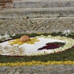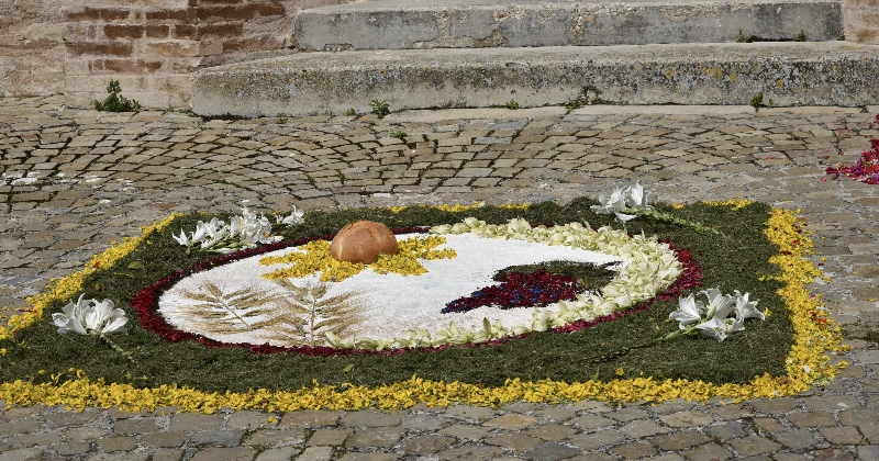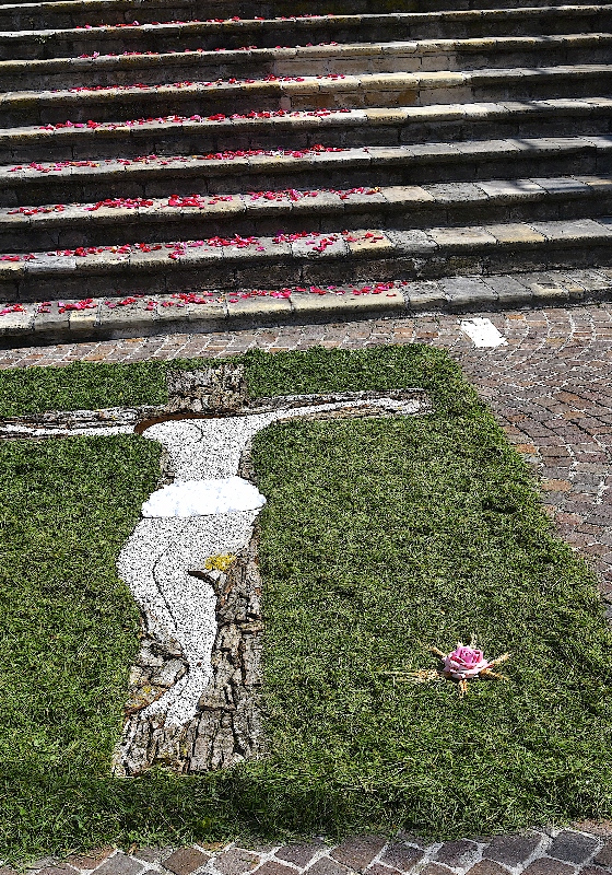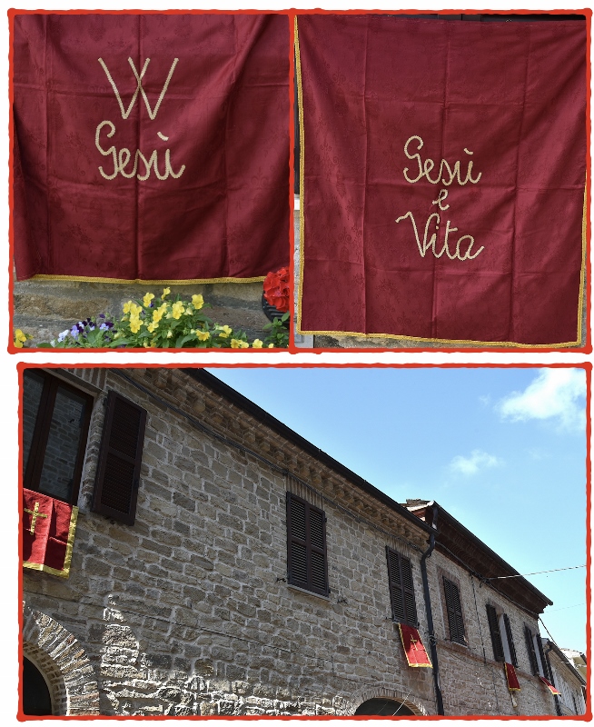 Stupende le opere che, con i petali dei fiori, sono state confezionate di fronte alle chiese e tantissime le finestre addobbate di rosso con inni a Gesù!!