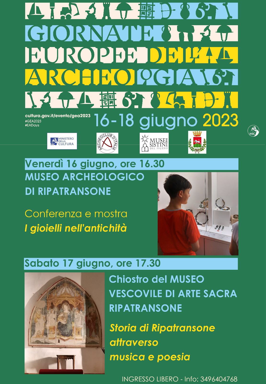 RIPATRANSONE – Saranno due gli appuntamenti di questo fine settimana che il Comune di Ripatransone, i Musei Sistini del Piceno e l’Archeoclub d’Italia – Ripatransone hanno pensato nell’ambito delle GEA (Giornate Europee di Archeologia), organizzate in Italia dal Ministero della Cultura nei giorni 16, 17 e 18 giugno.