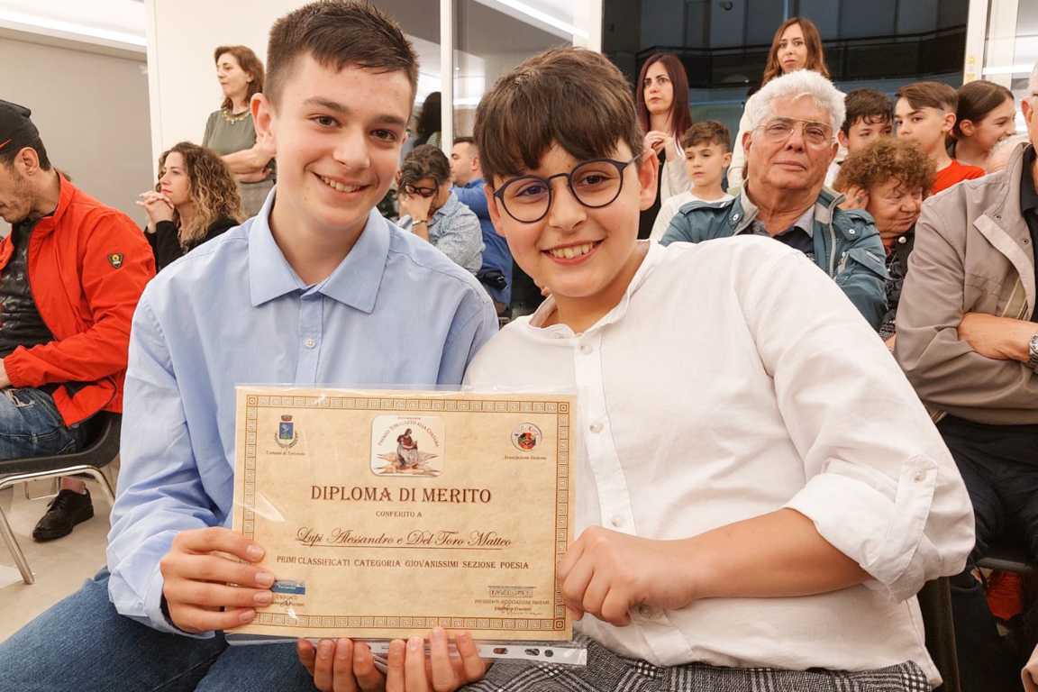 COLONNELLA – “L’estate di Villetta Barrea”: è questo il titolo del componimento poetico che è valso ai giovanissimi colonnellesi Alessandro Lupi e Matteo Del Toro il primo posto nella XVIII edizione del Premio Nazionale “Tortoreto alla cultura”, uno dei pochi anni in cui il riconoscimento è rimasto sul territorio.