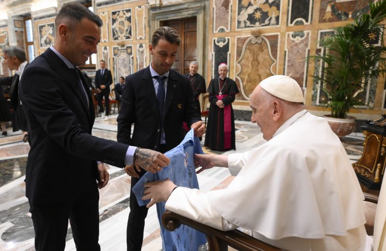 “Molte volte ho ripetuto che lo sport è motivo e occasione per riscoprire e promuovere molti valori della nostra società e, in questo senso, incontrarmi con un club ‘della Galizia’ è per me qualcosa che mi evoca tante esperienze che come argentino ho vissuta sulla mia pelle”. Lo ha detto, stamattina, Papa Francesco, ricevendo in udienza i dirigenti e i calciatori del Real Club Celta de Vigo (Spagna) in occasione del centenario della sua fondazione. I colori della divisa della squadra sono celeste la maglia e bianco per i calzoncini, i colori “della Vergine Immacolata” e anche “della maglia” della squadra argentina, “quasi come se nostra Madre avesse voluto incastonarsi tra le due sponde di questo grande oceano che, più che separarci, ci ha uniti perché non la dimenticassimo”. Il Pontefice ha, quindi riflettuto, sul “profondo significato” della divisa societaria, i colori segno della “protezione della Vergine” e l’emblema della croce di san Giacomo che “si innalza come uno stendardo di vittoria nella battaglia della vita”, colori e simbolo lasciati alle spalle anche dai “tanti migranti che giunsero in Argentina”.
